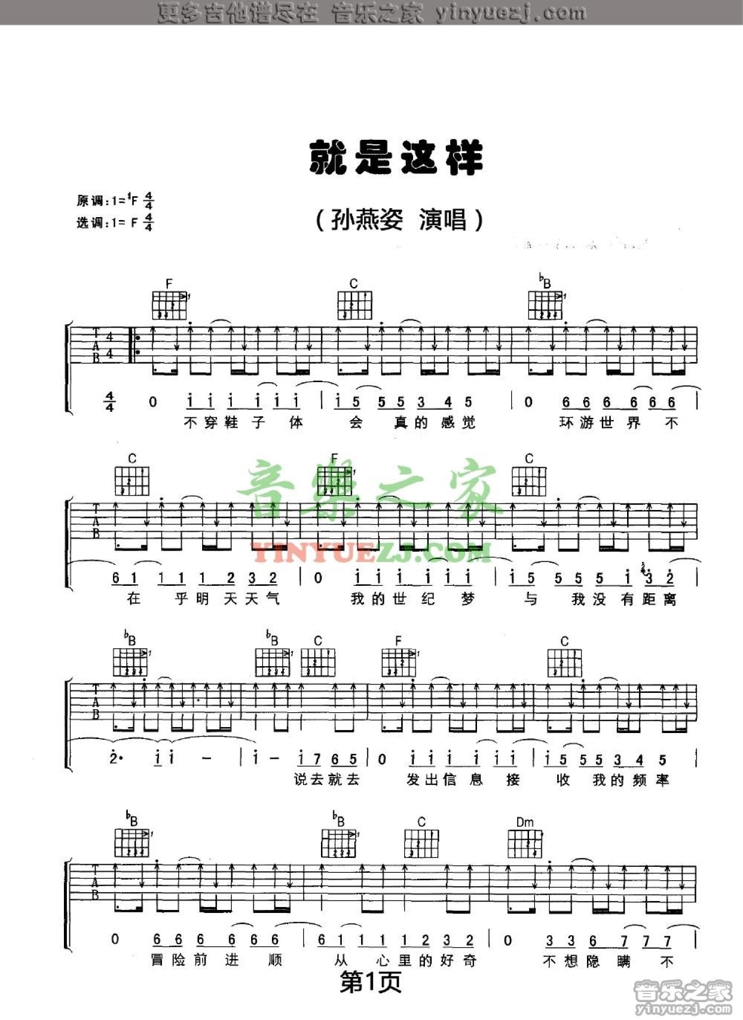 曲谱介绍: 孙燕姿《就是这样》吉他谱