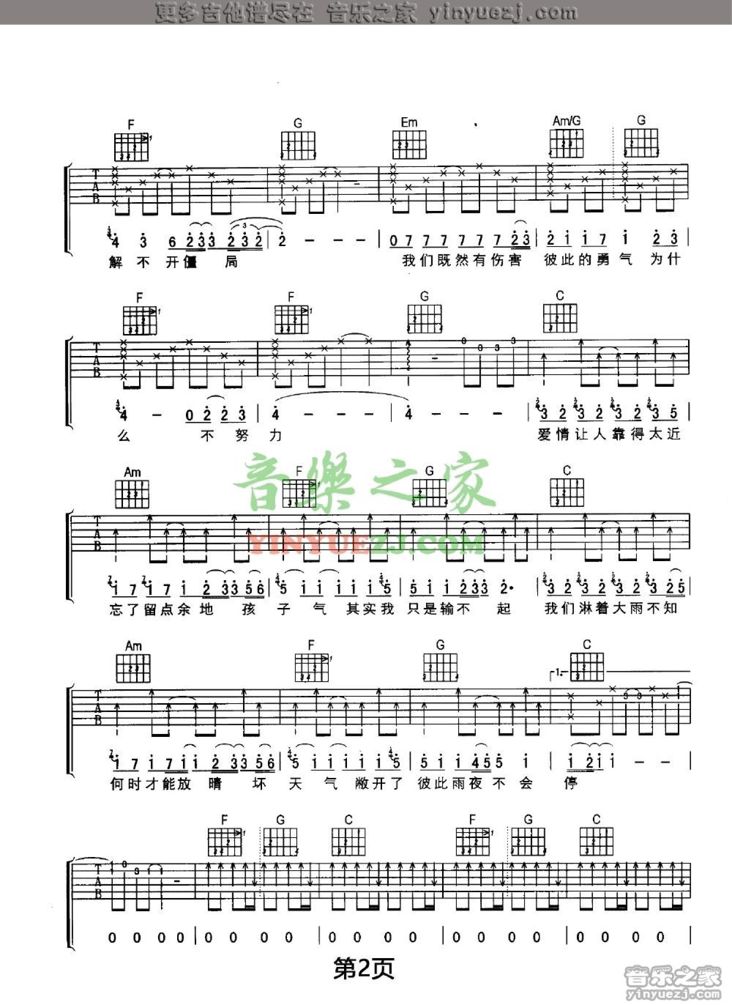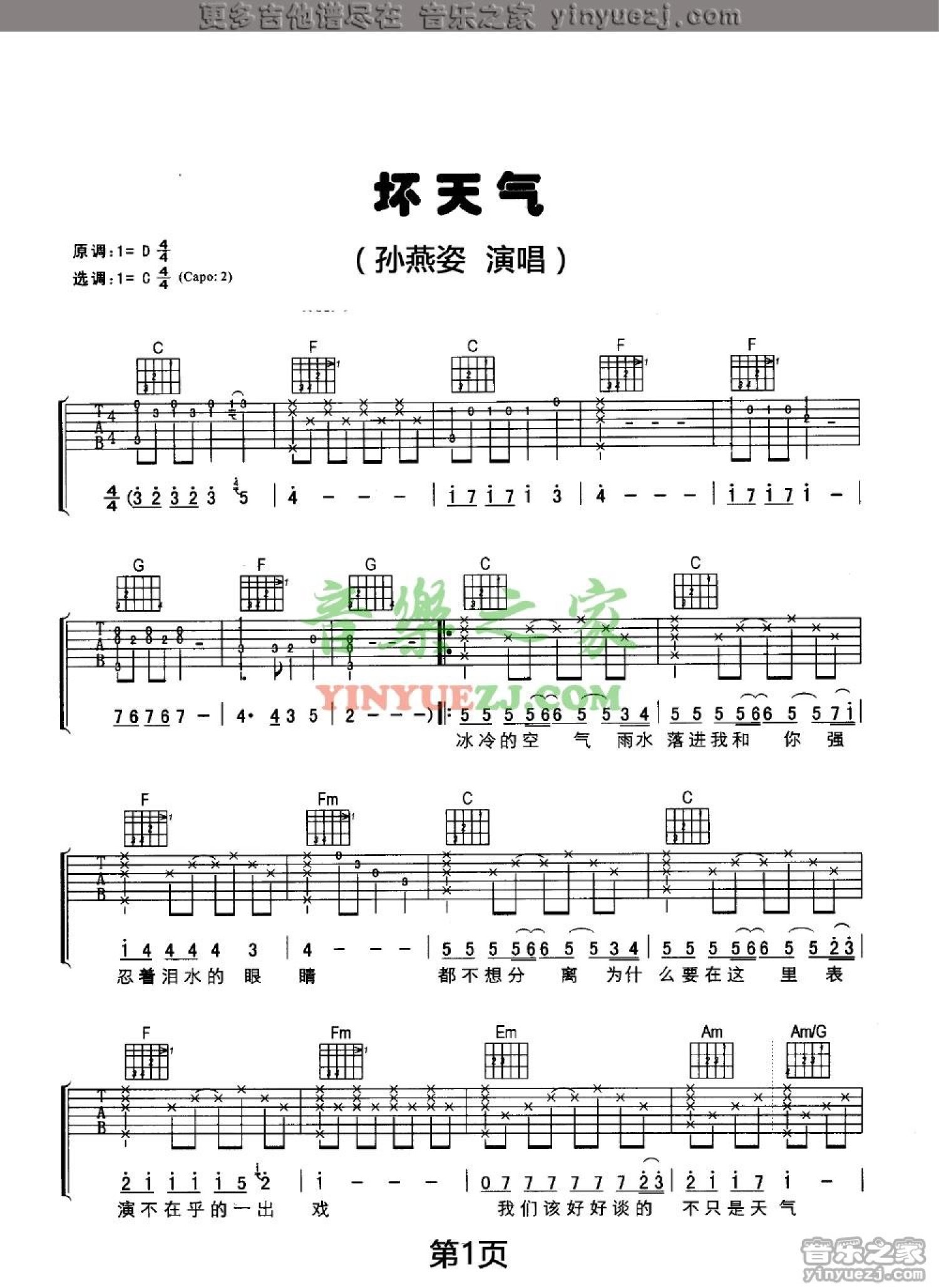 曲谱介绍: 孙燕姿《坏天气》吉他谱