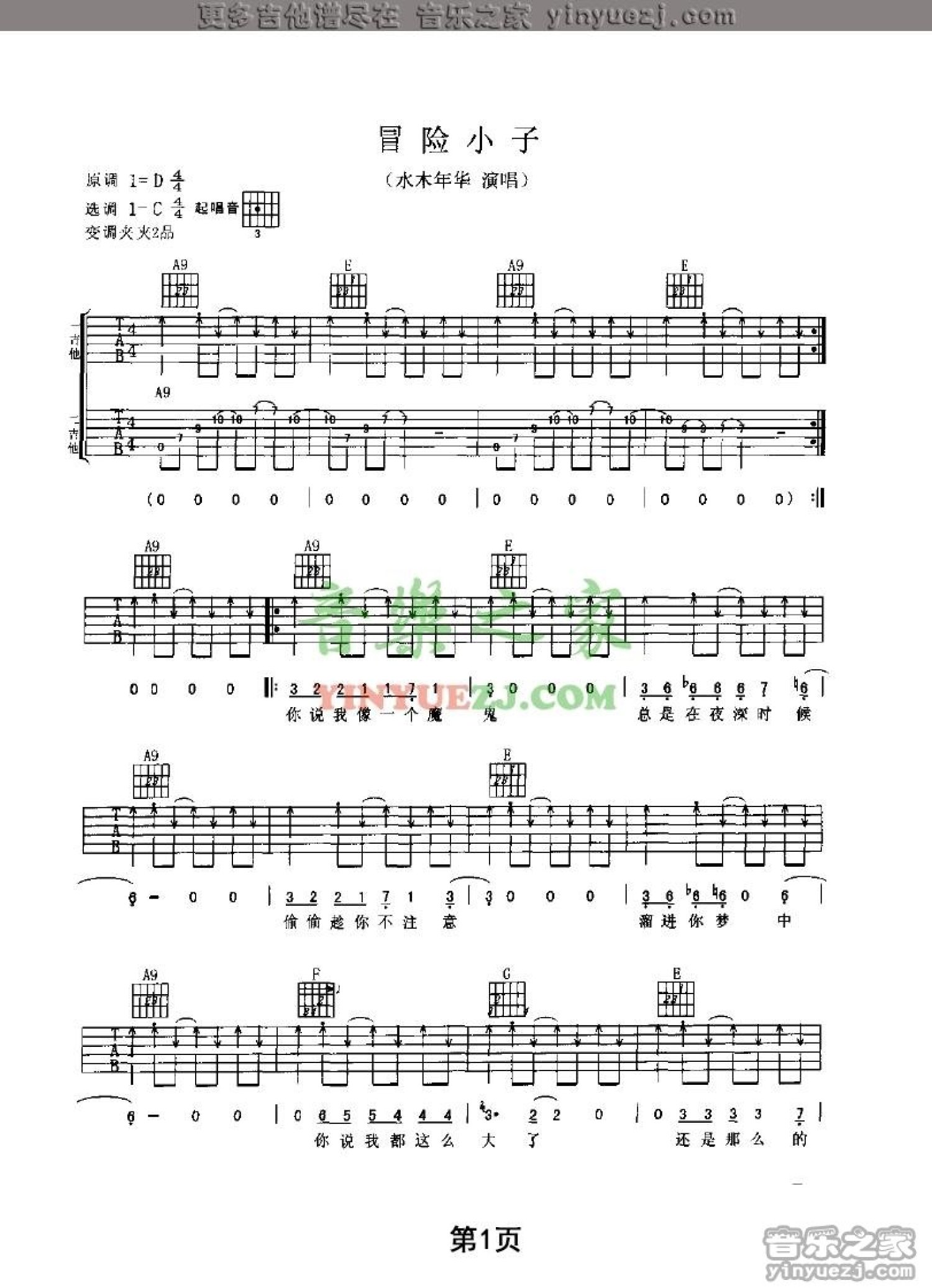 曲谱介绍: 水木年华《冒险小子》吉他谱