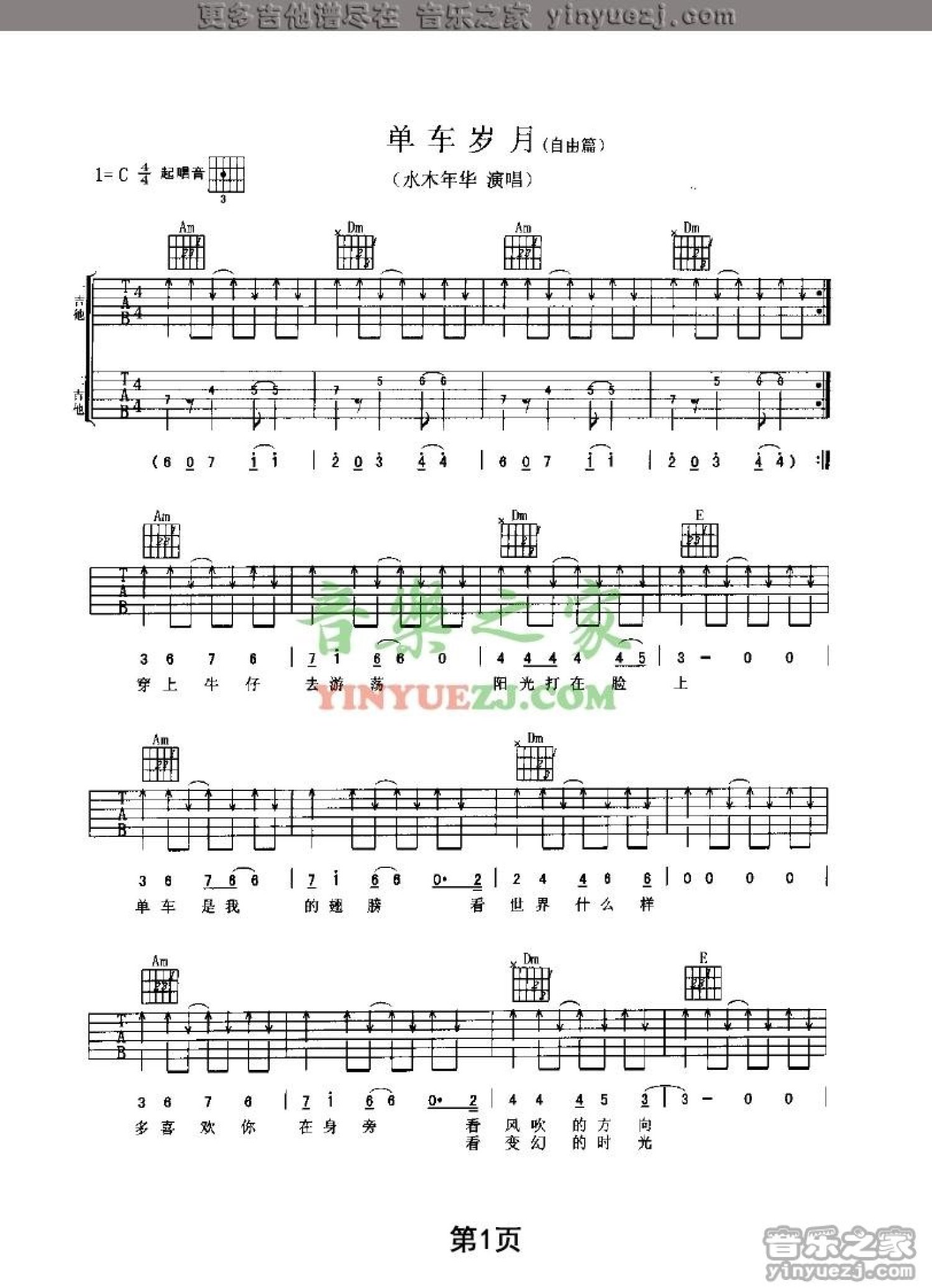 单车岁月吉他谱 - 水木年华 - C调吉他弹唱谱
