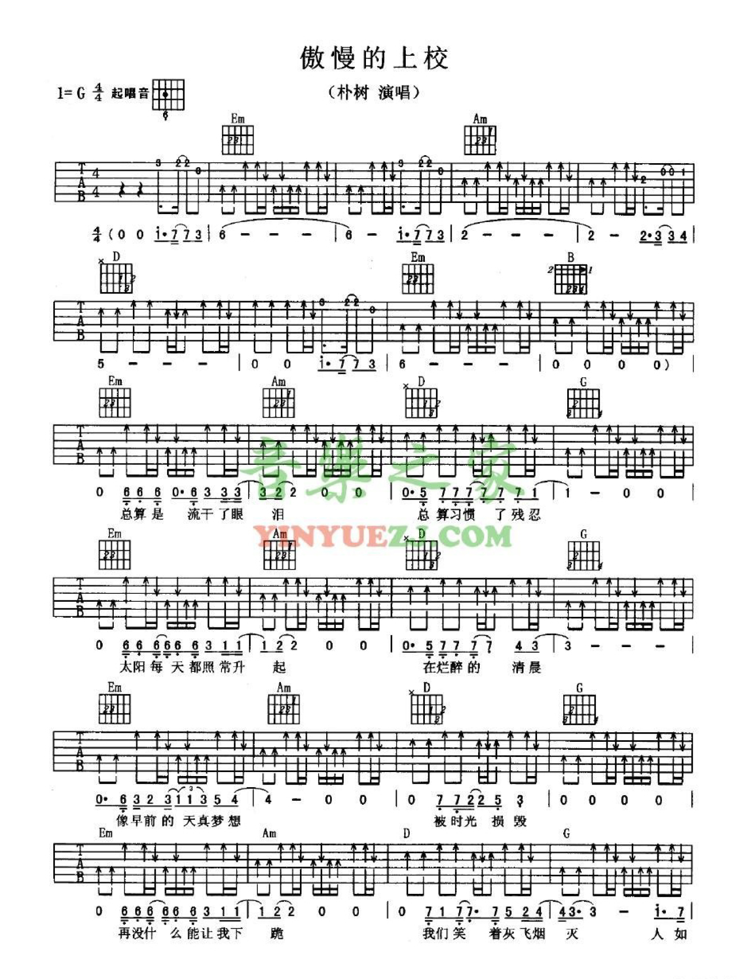 曲谱介绍: 朴树《傲慢的上校》吉他谱
