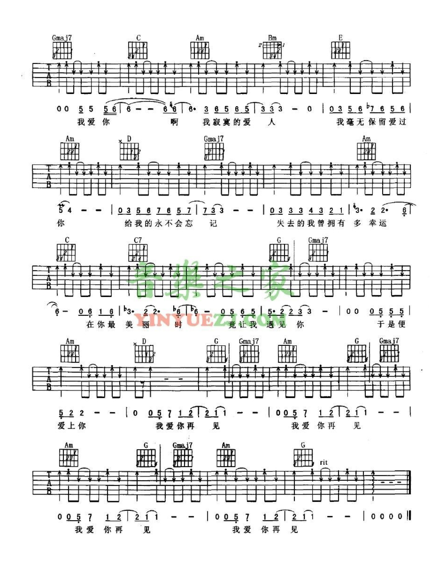 当前位置:琴谱网>吉他弹唱>我爱你再见