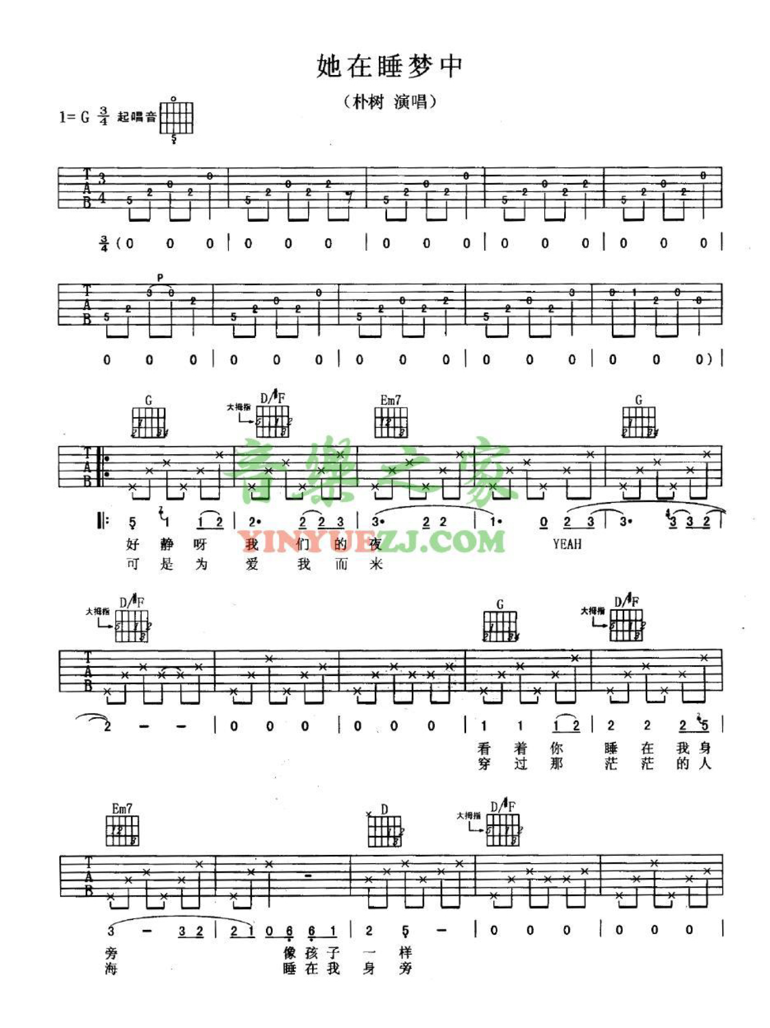 曲谱介绍: 朴树《她在睡梦中》吉他谱