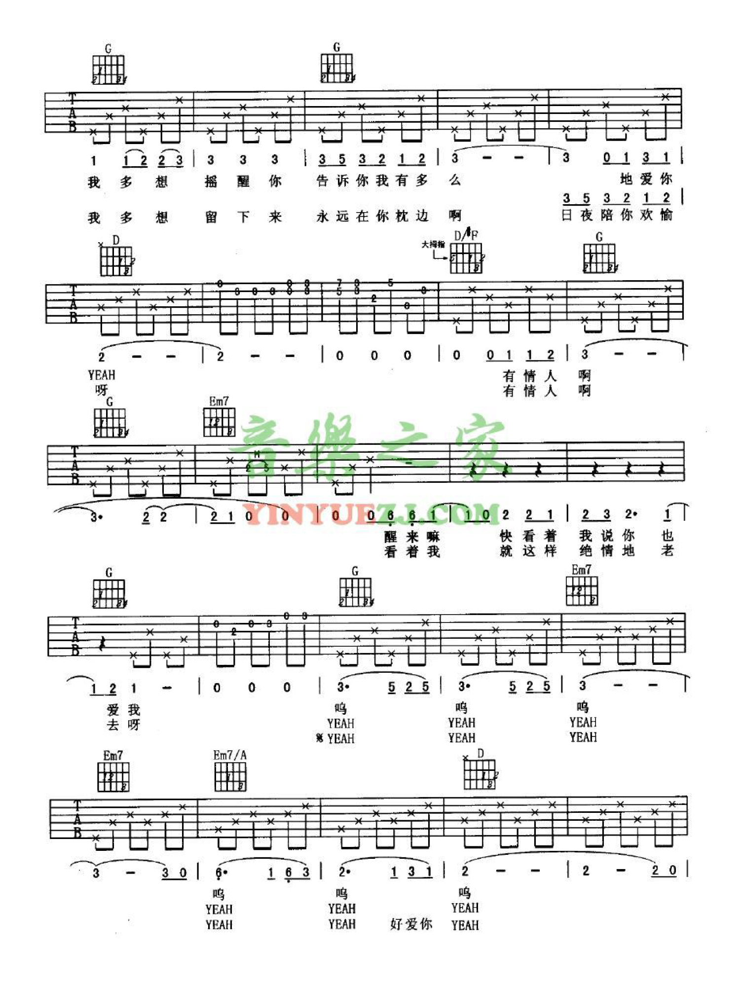 当前位置:琴谱网>吉他弹唱>她在睡梦中