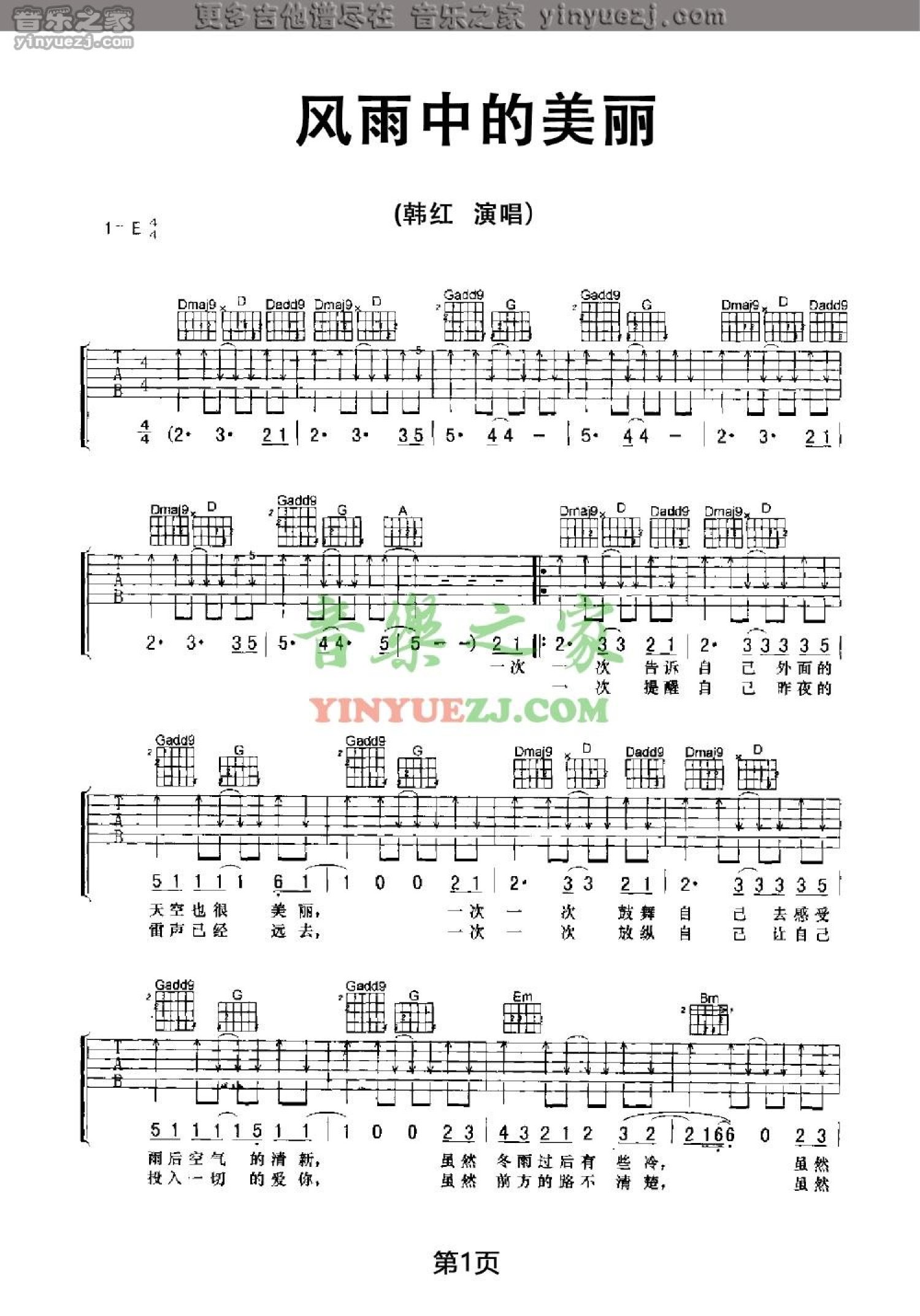 风雨中的美丽吉他谱 - 韩红 - E调吉他弹唱谱
