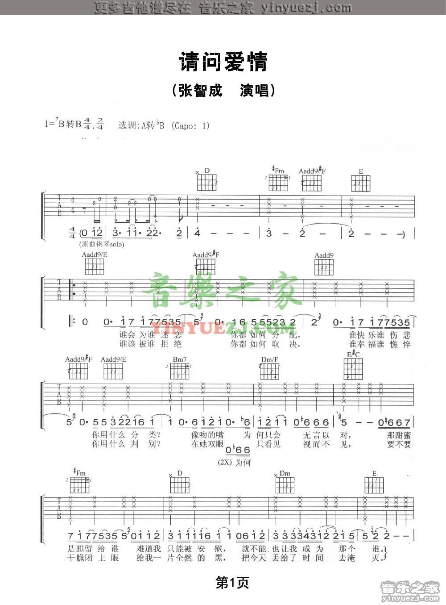 曲谱介绍: 张智成《请问爱情》吉他谱