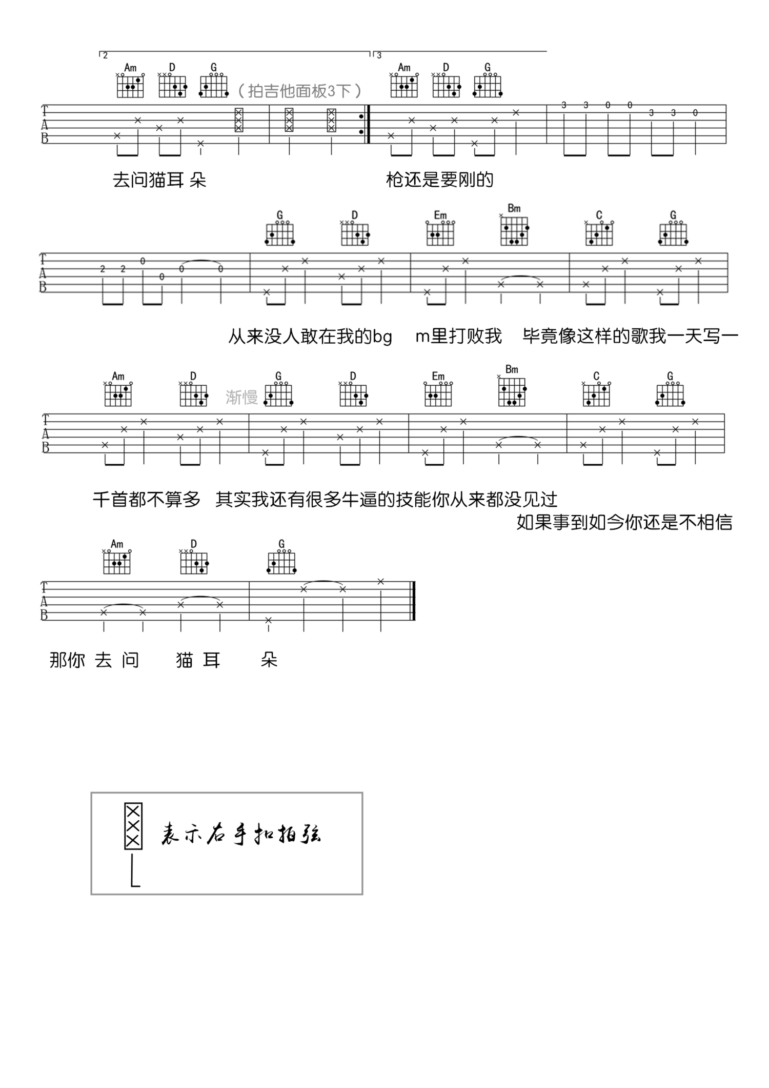 曲谱介绍: 《去问猫耳朵》花粥吉他谱_六线图片谱