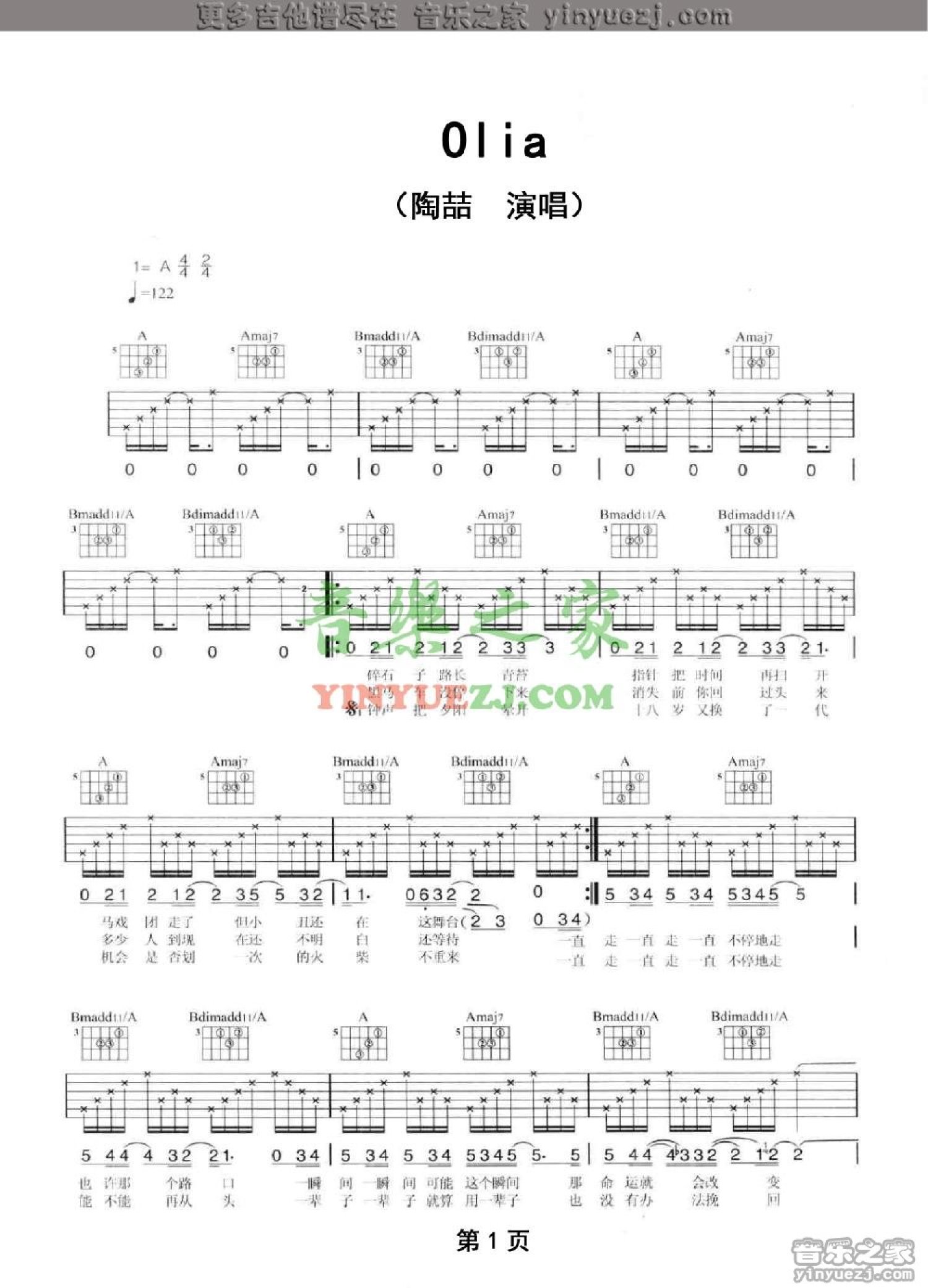 olia吉他谱 - 陶喆 - A调吉他弹唱谱