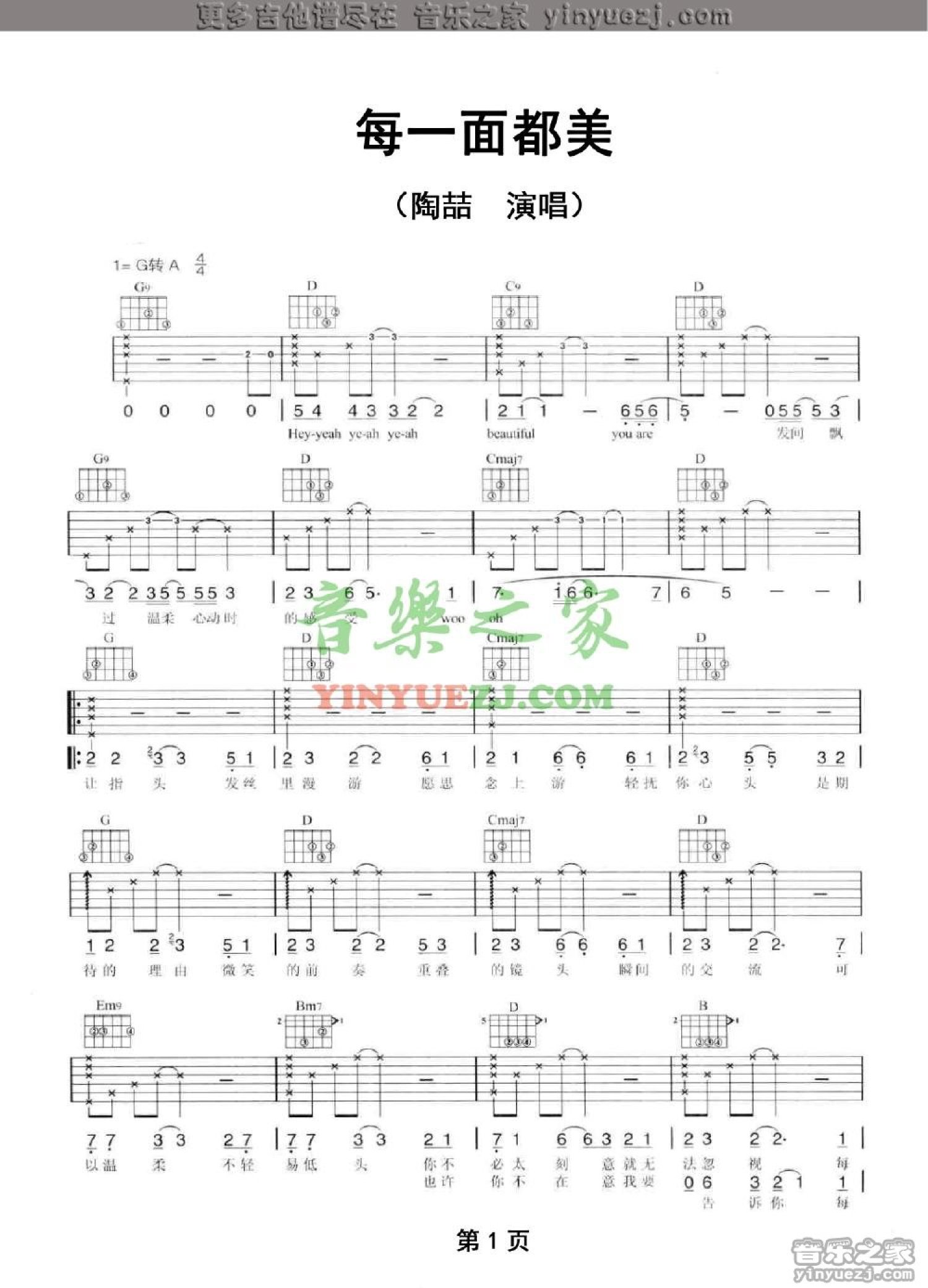 当前位置:琴谱网>吉他弹唱>每一面都美