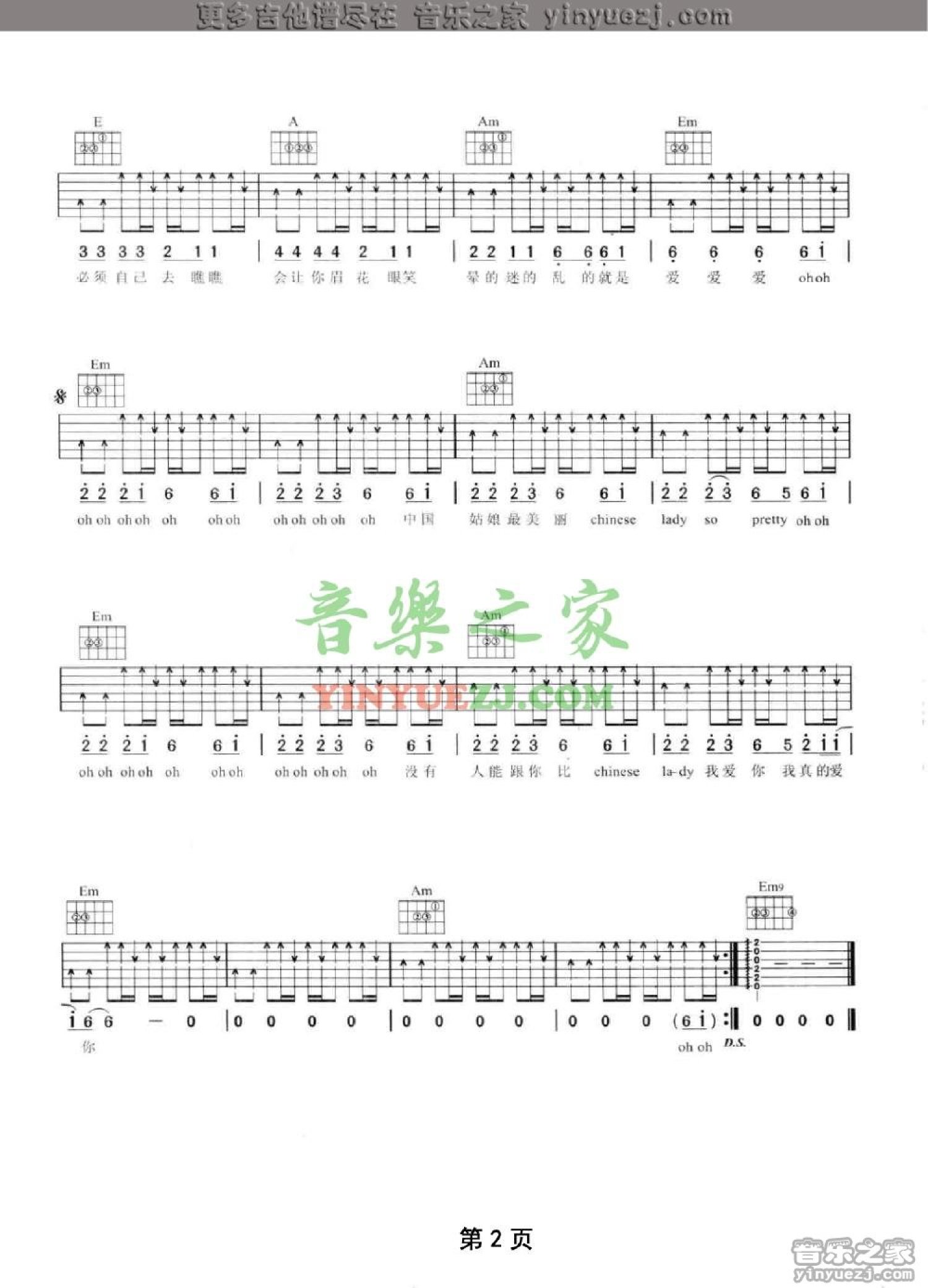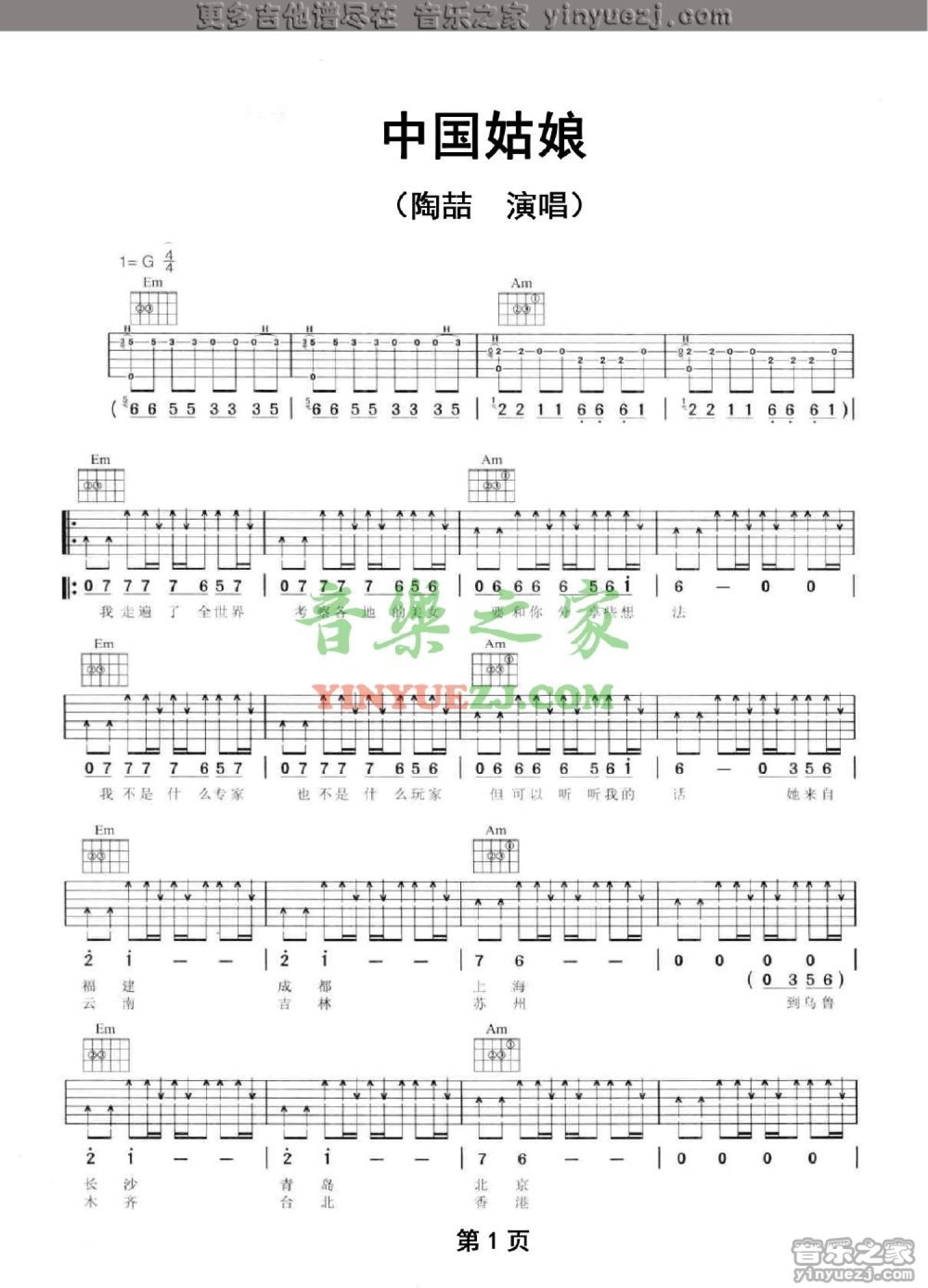 当前位置:琴谱网>吉他弹唱>中国姑娘