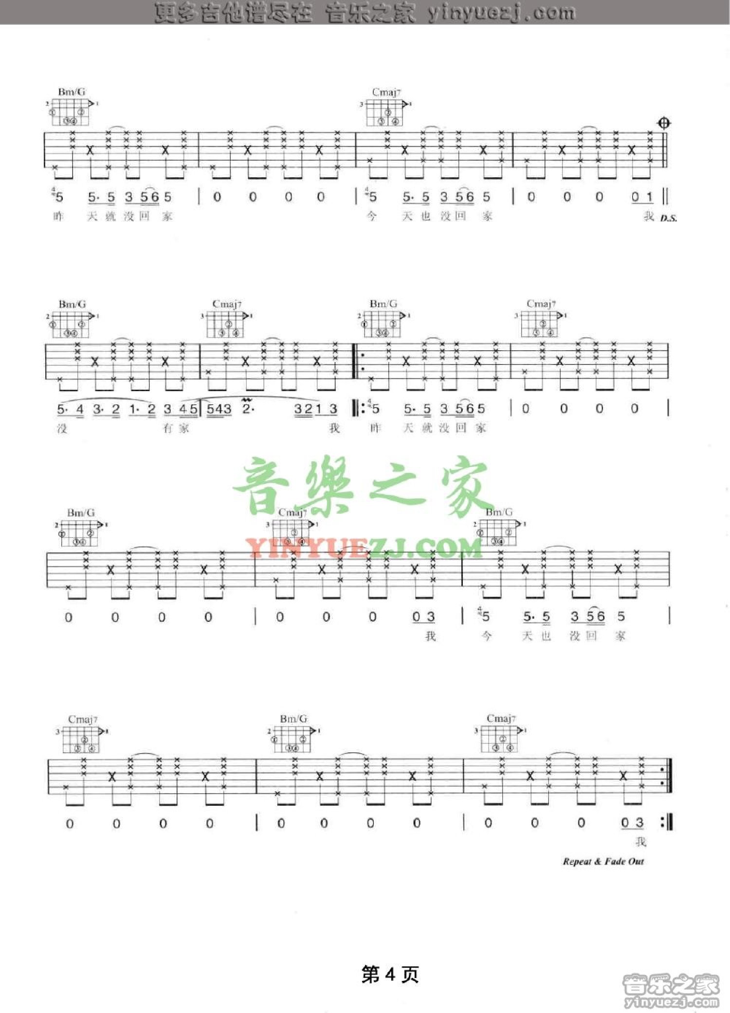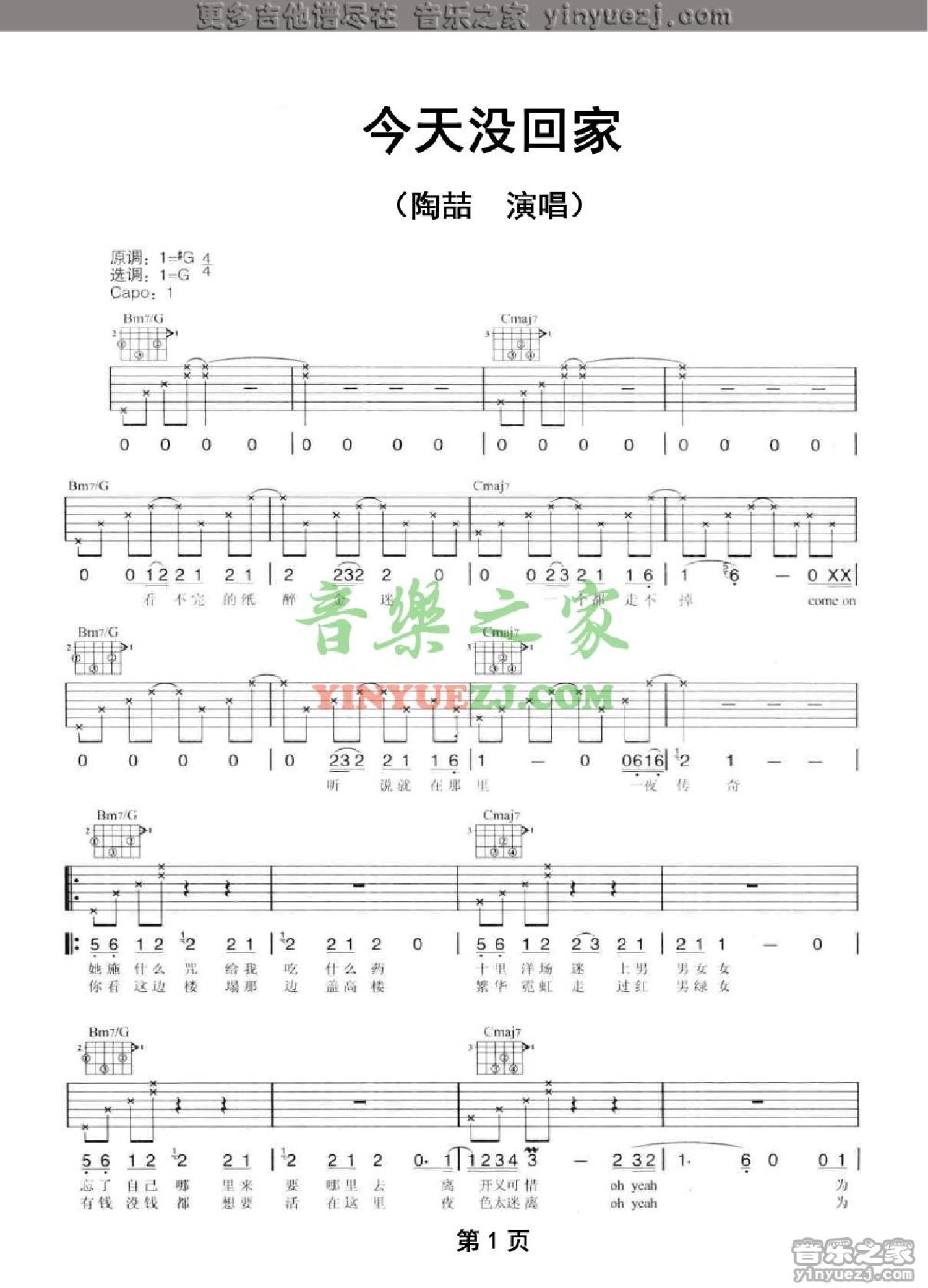 当前位置:琴谱网>吉他弹唱>今天没回家