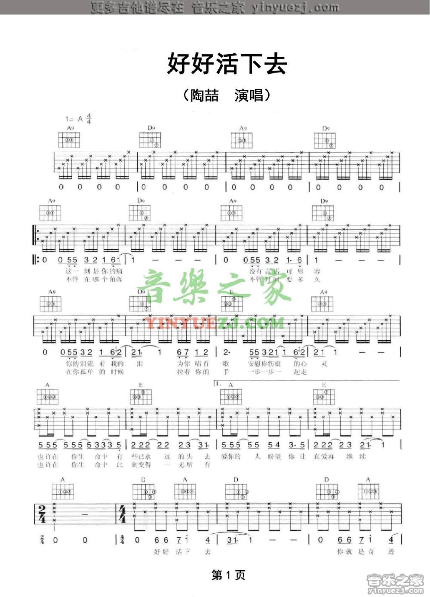 好好活下去吉他谱 - 陶喆 - A调吉他弹唱谱