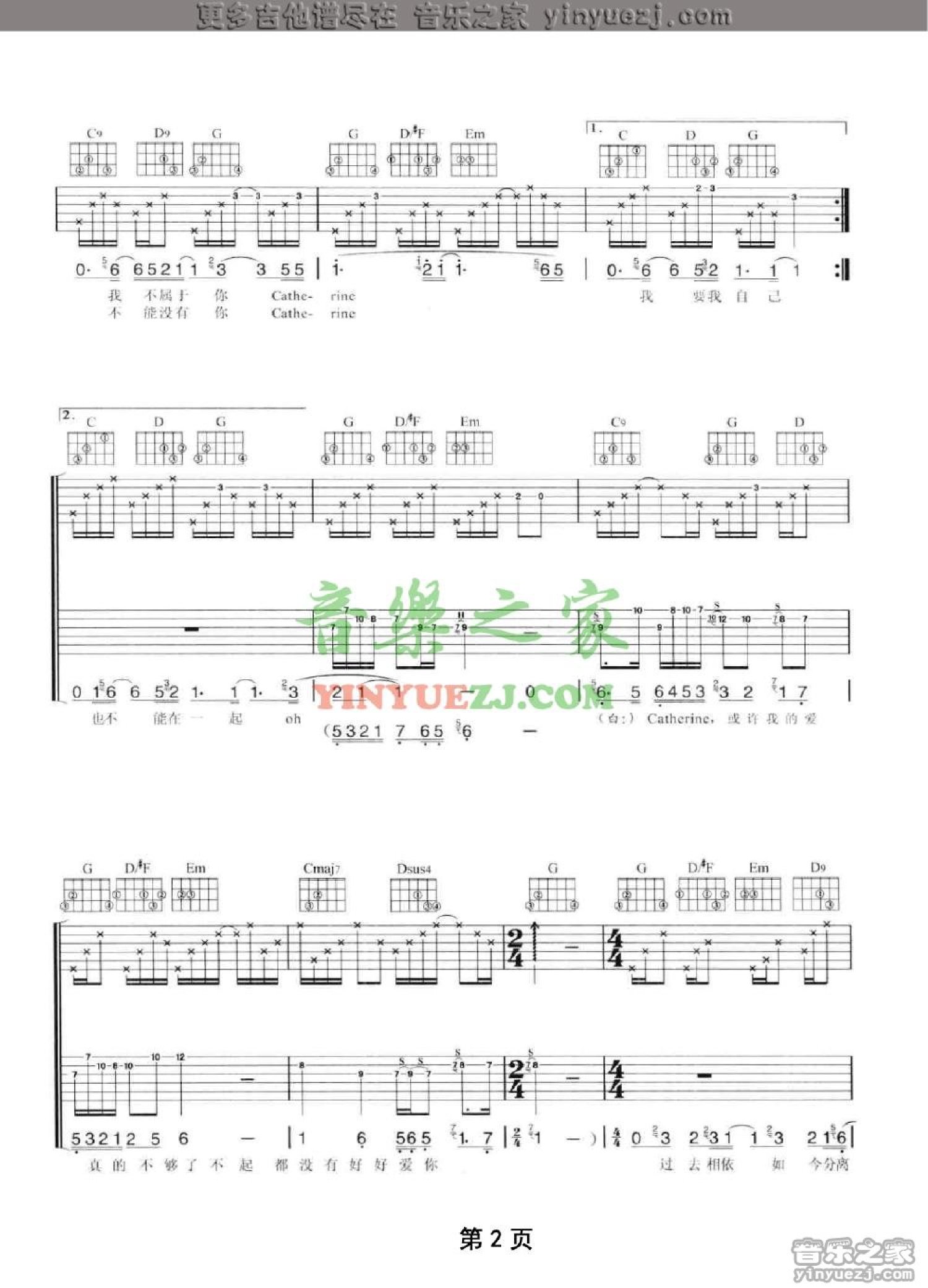 曲谱介绍: 陶喆《Catherine》吉他谱
