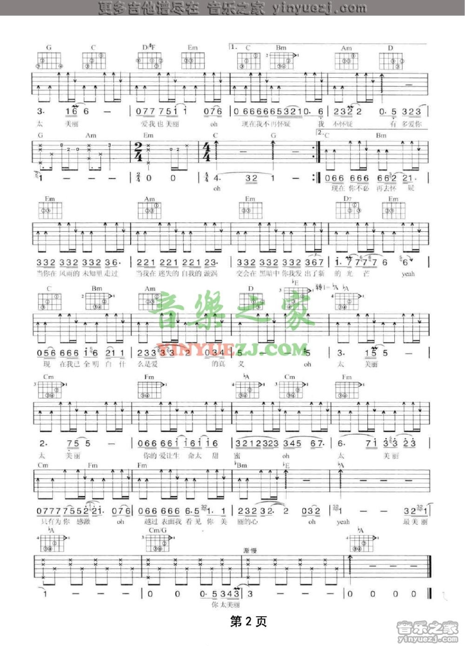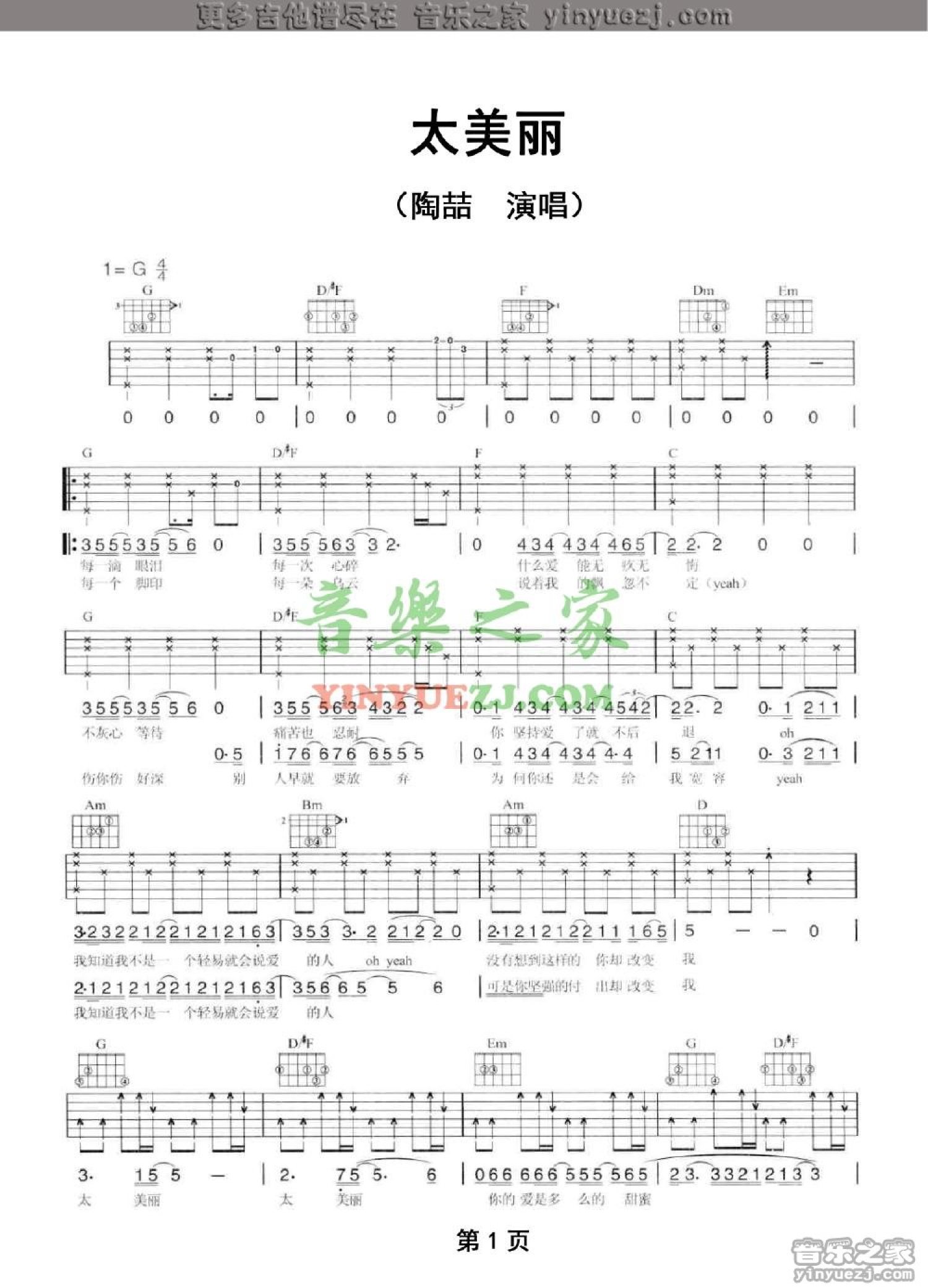 太美丽吉他谱 - 陶喆 - G调吉他弹唱谱