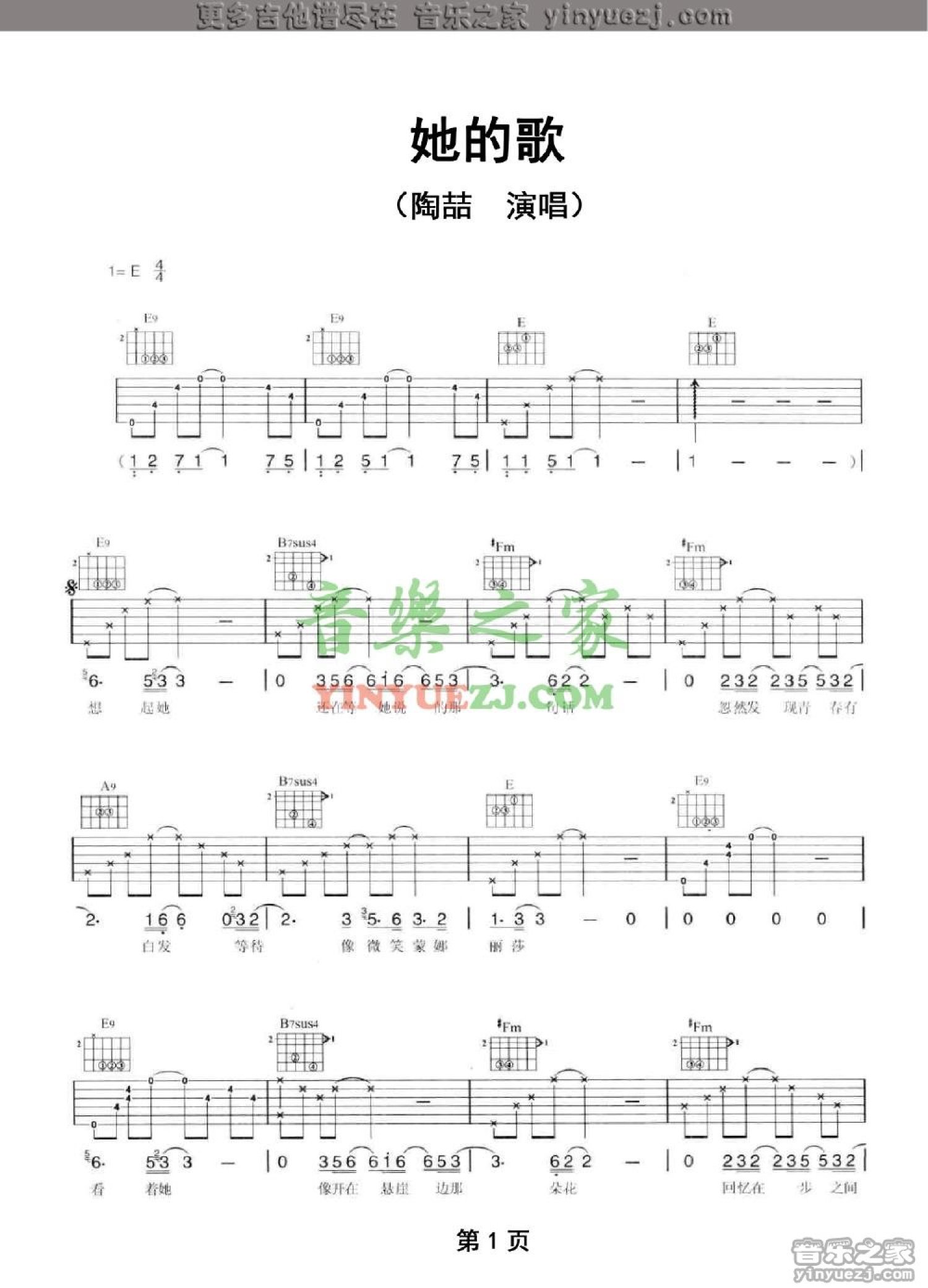 她的歌吉他谱 - 陶喆 - E调吉他弹唱谱