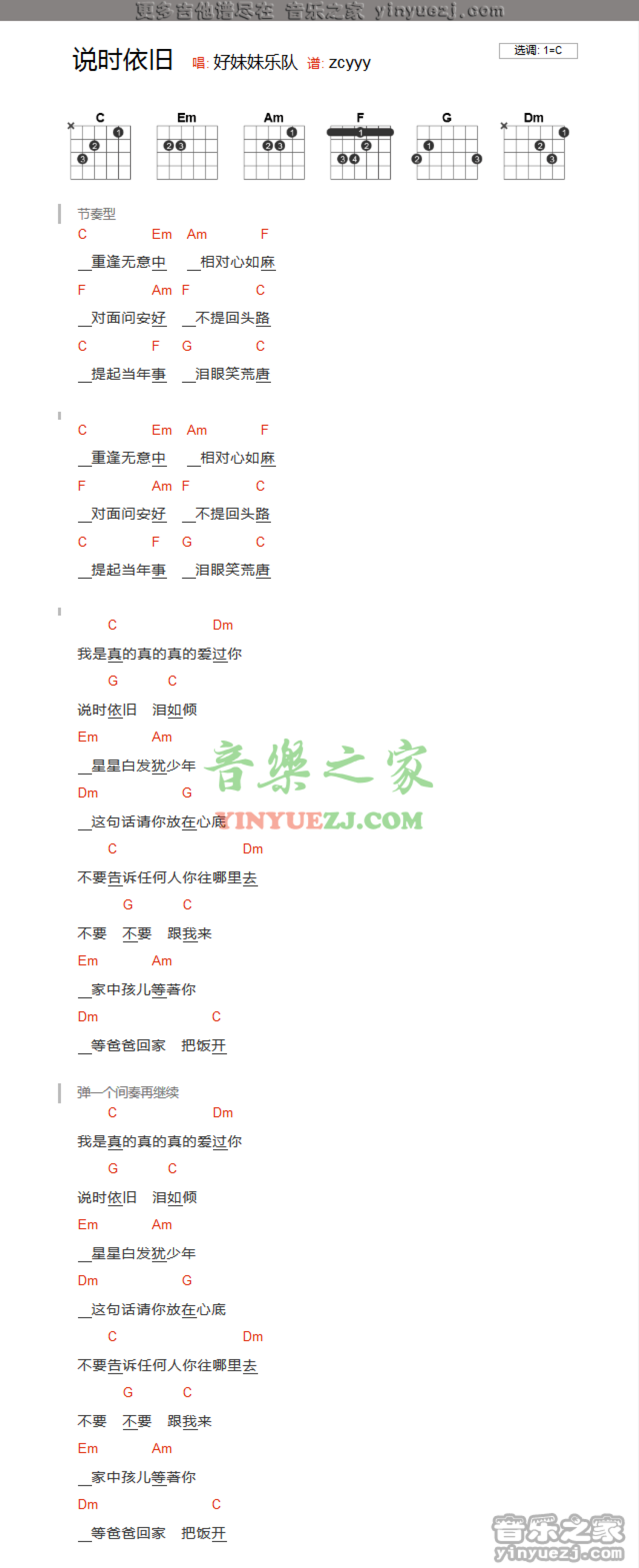 说时依旧吉他谱 - 好妹妹 - C调吉他弹唱谱 - 和弦谱