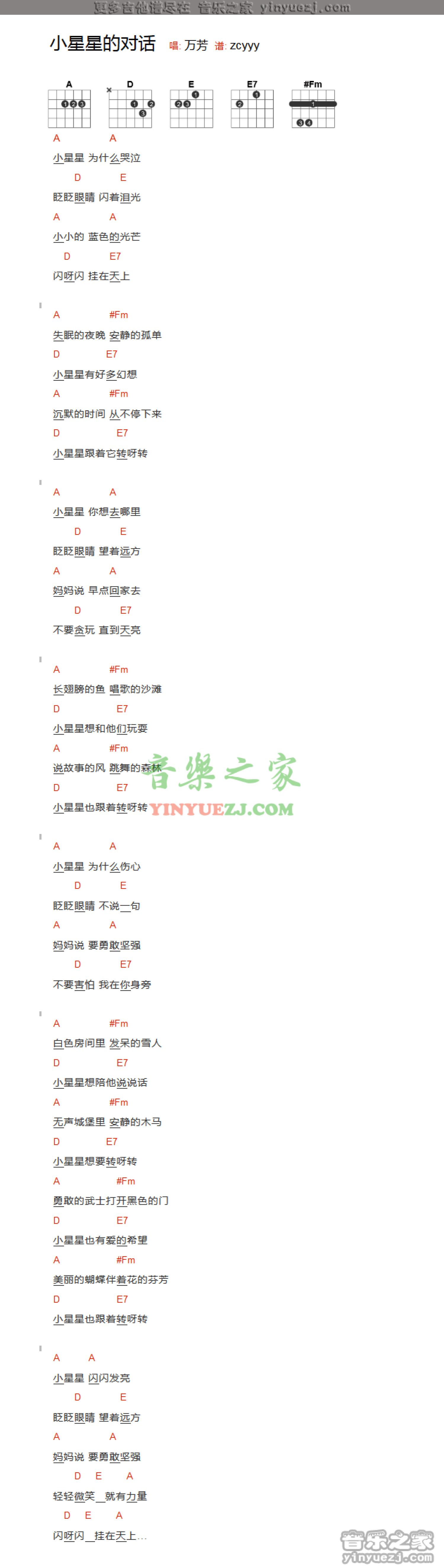 小星星的对话吉他谱 - 万芳 - 吉他弹唱谱 - 和弦谱