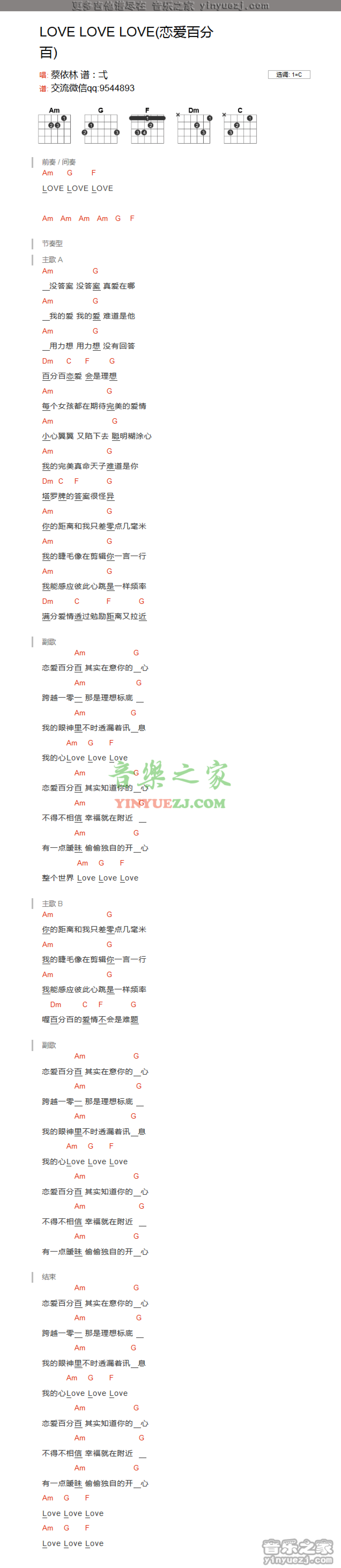 当前位置:琴谱网>吉他弹唱>love love love恋爱百分百