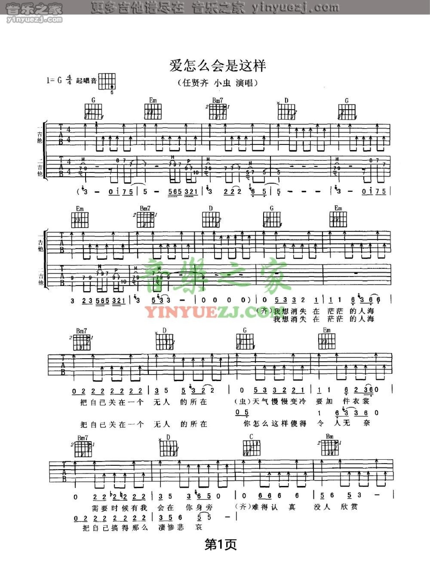 当前位置:琴谱网>吉他弹唱>爱怎么会是这样
