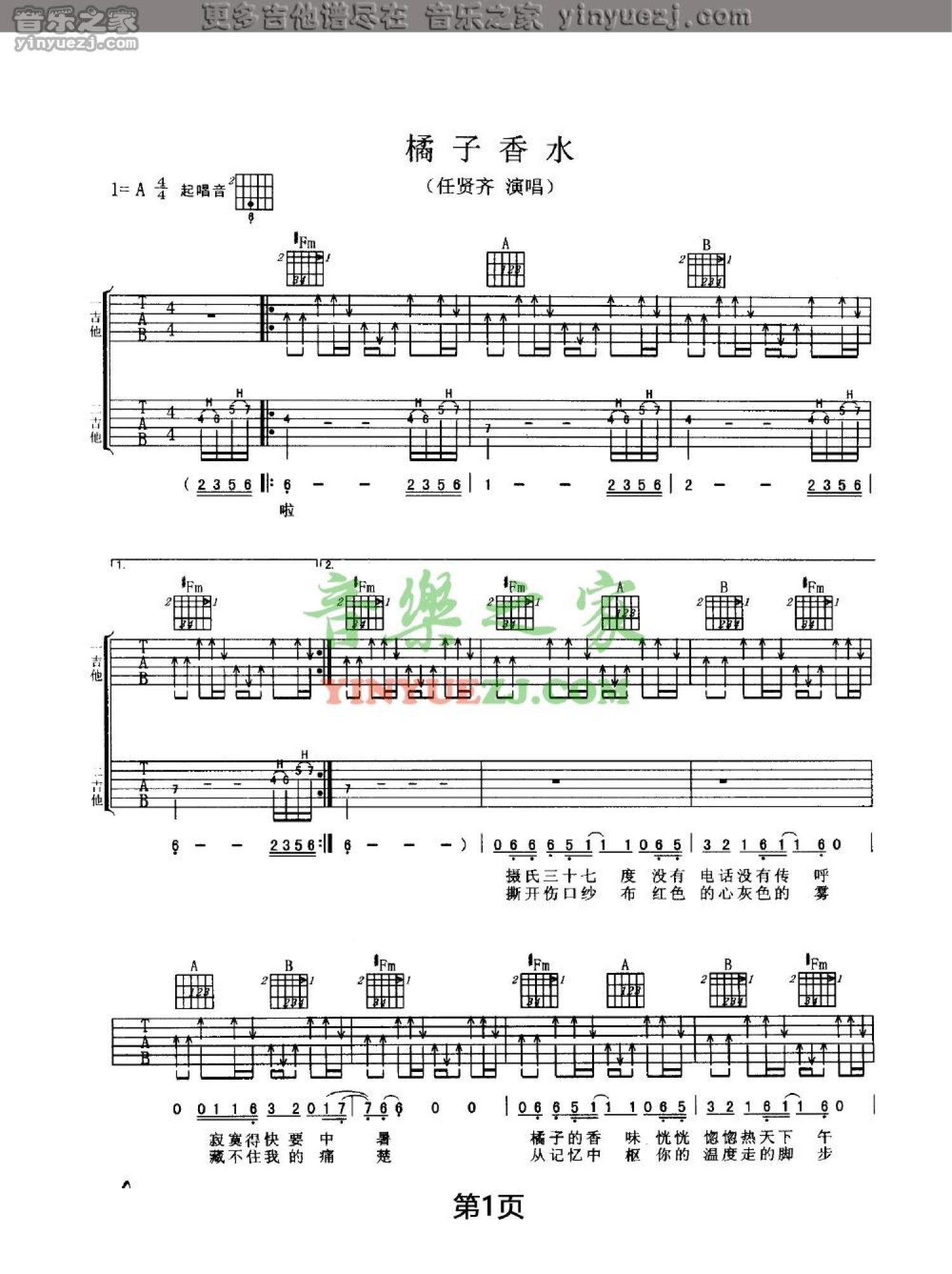 曲谱介绍: 任贤齐《橘子香水》吉他谱