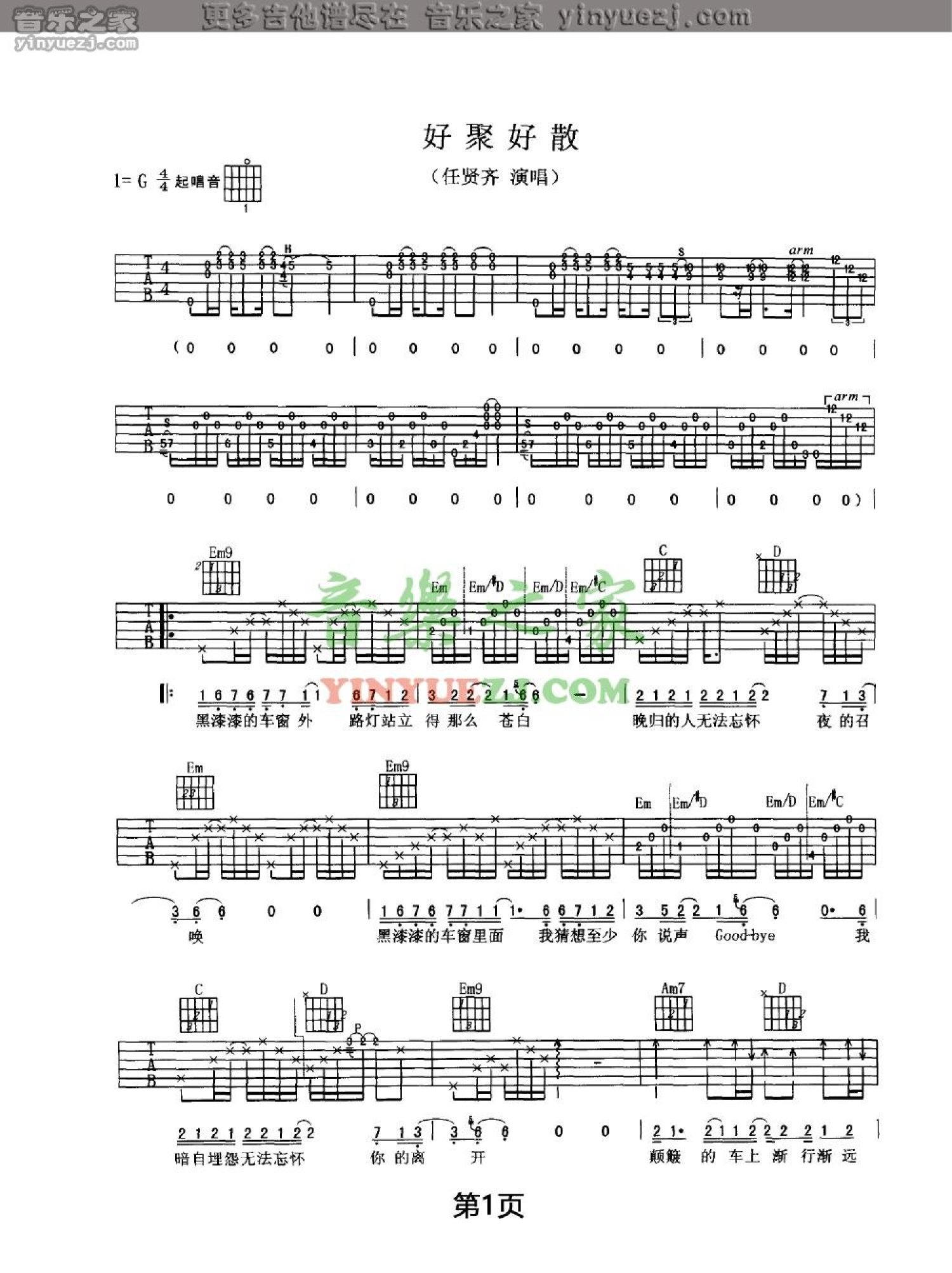 曲谱介绍: 任贤齐《好聚好散》吉他谱