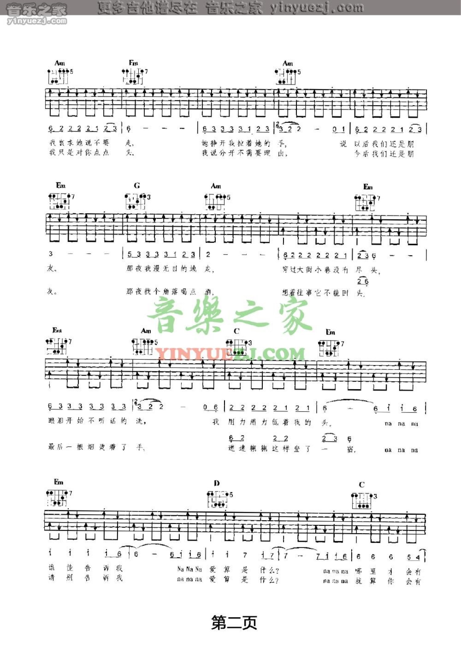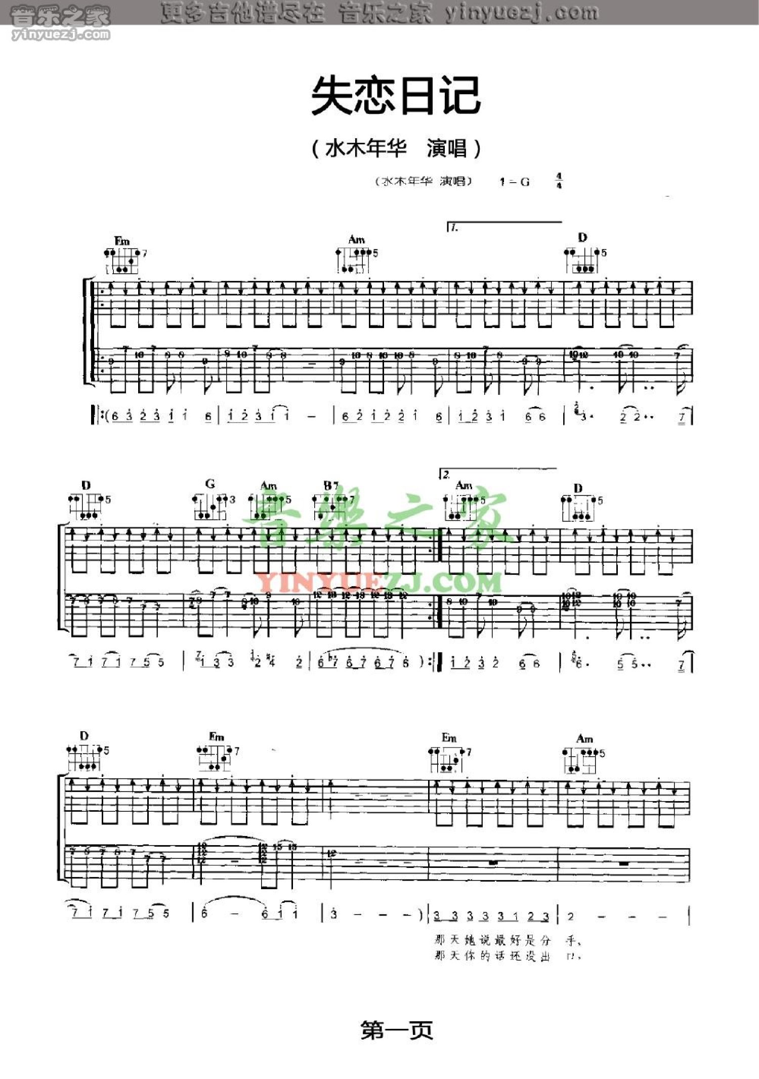 曲谱介绍: 水木年华《失恋日记》吉他谱