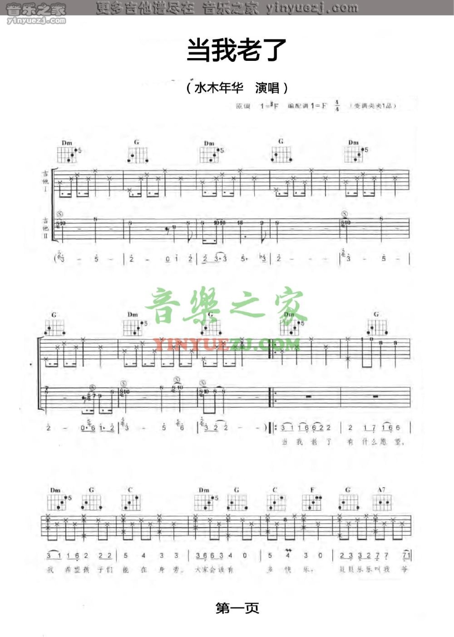 当我老了吉他谱 - 水木年华 - F调吉他弹唱谱
