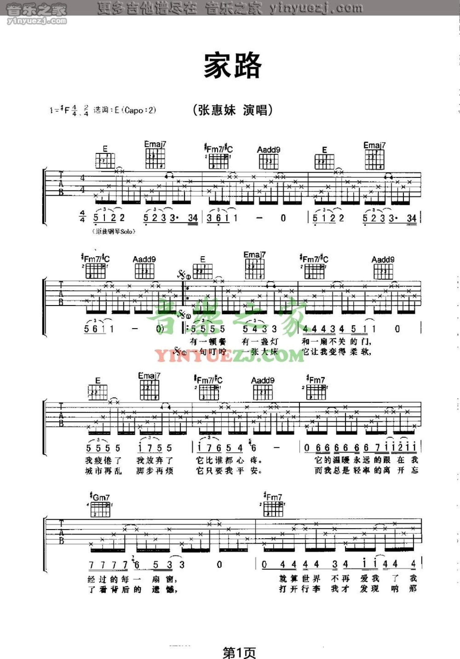 家路吉他谱 - 张惠妹 - E调吉他弹唱谱