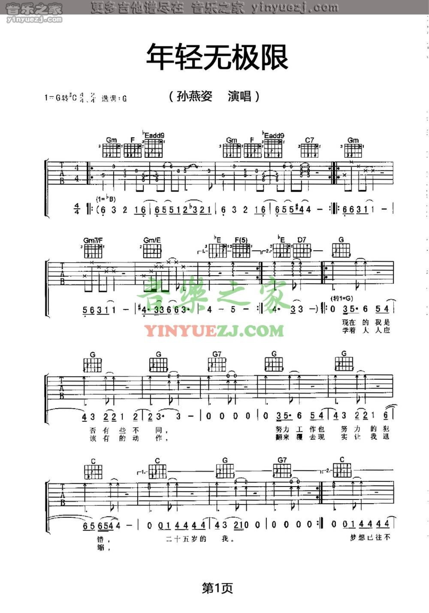 曲谱介绍: 孙燕姿《年轻无极限》吉他谱