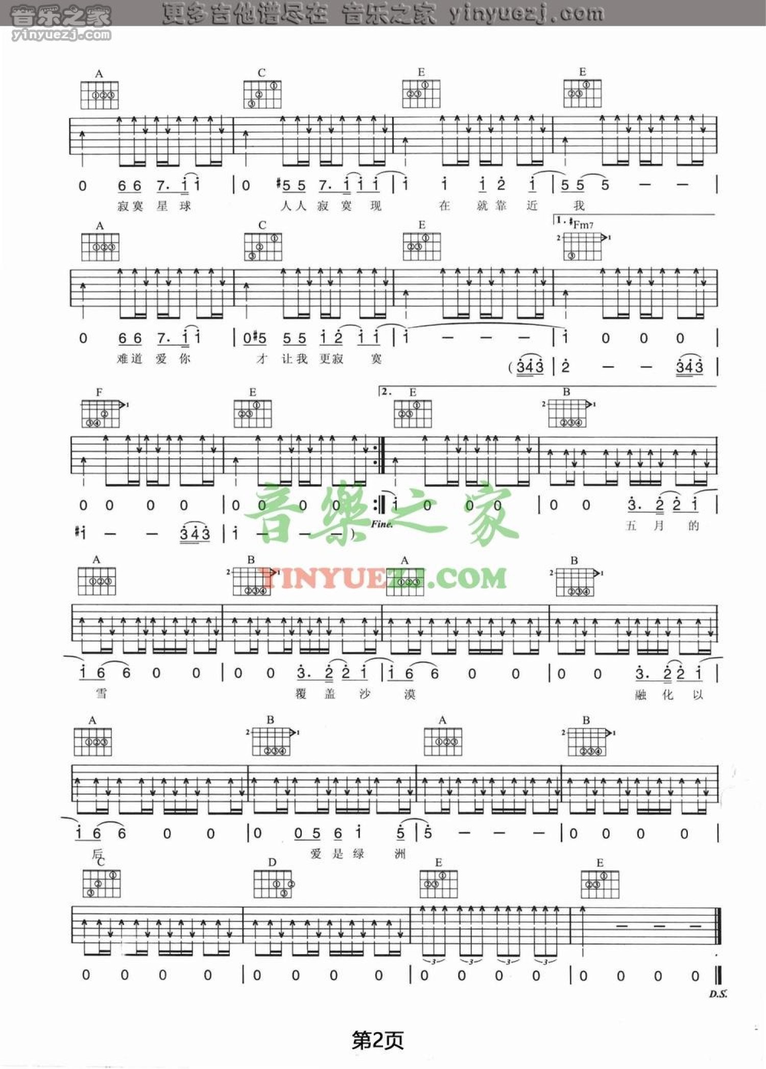 曲谱介绍: 五月天《寂寞星球》吉他谱