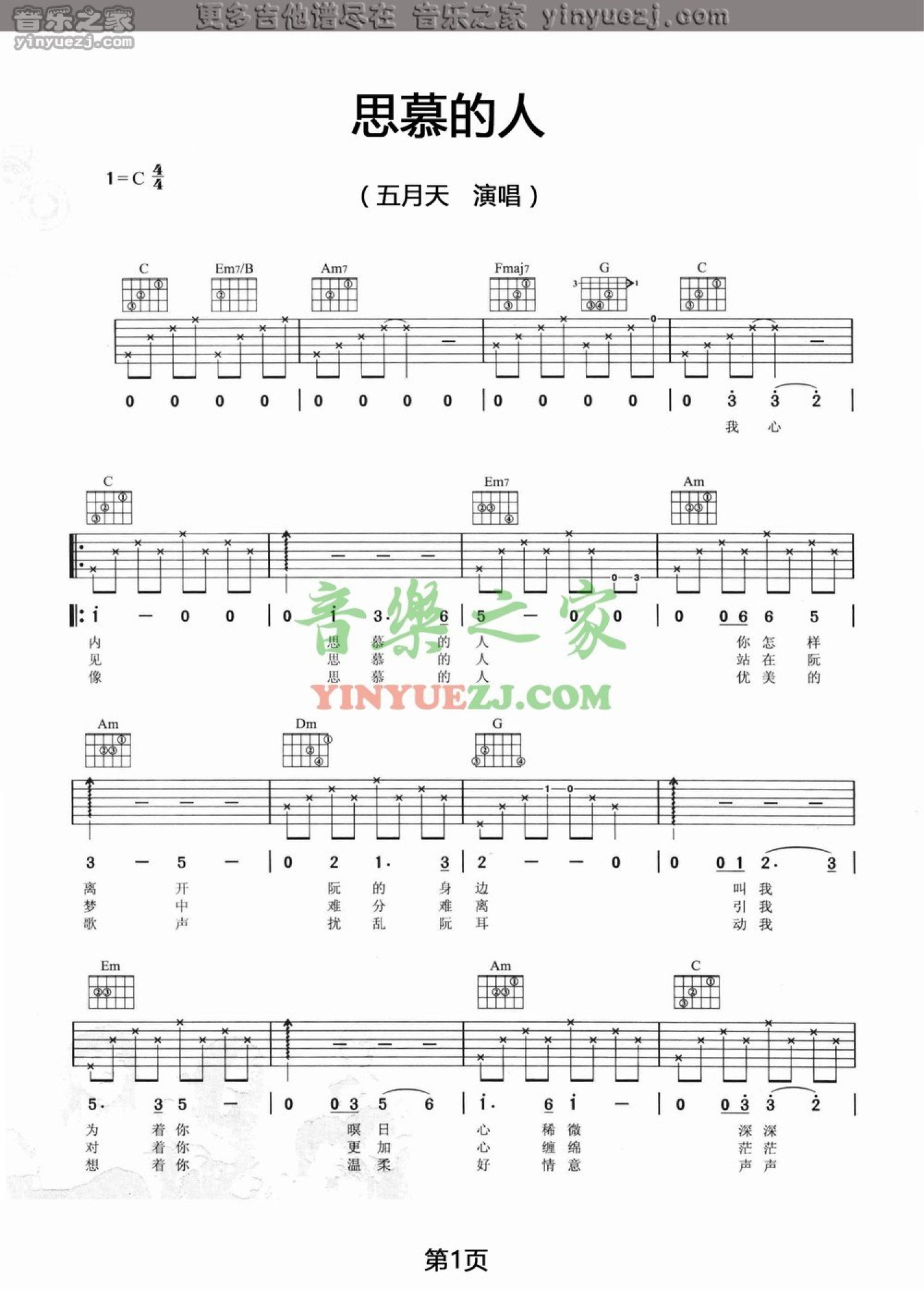 思慕的人吉他谱 - 五月天 - C调吉他弹唱谱