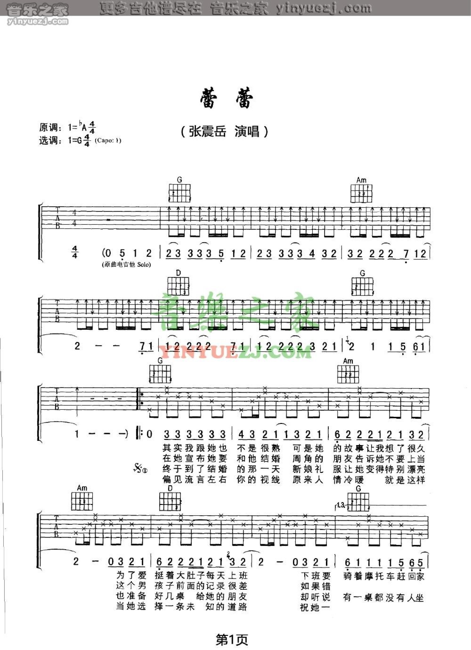 蕾蕾吉他谱 - 张震岳 - G调吉他弹唱谱