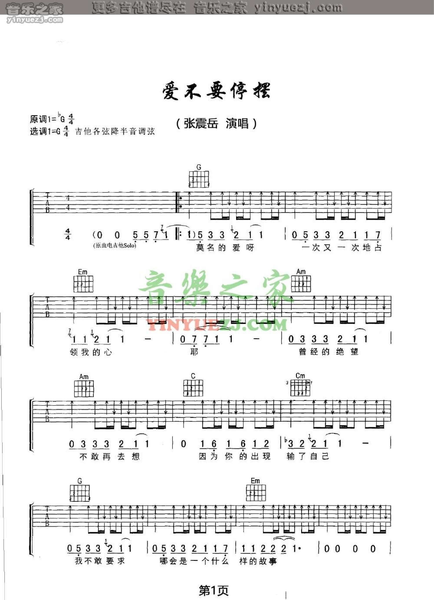 爱不要停摆吉他谱 - 张震岳 - G调吉他弹唱谱