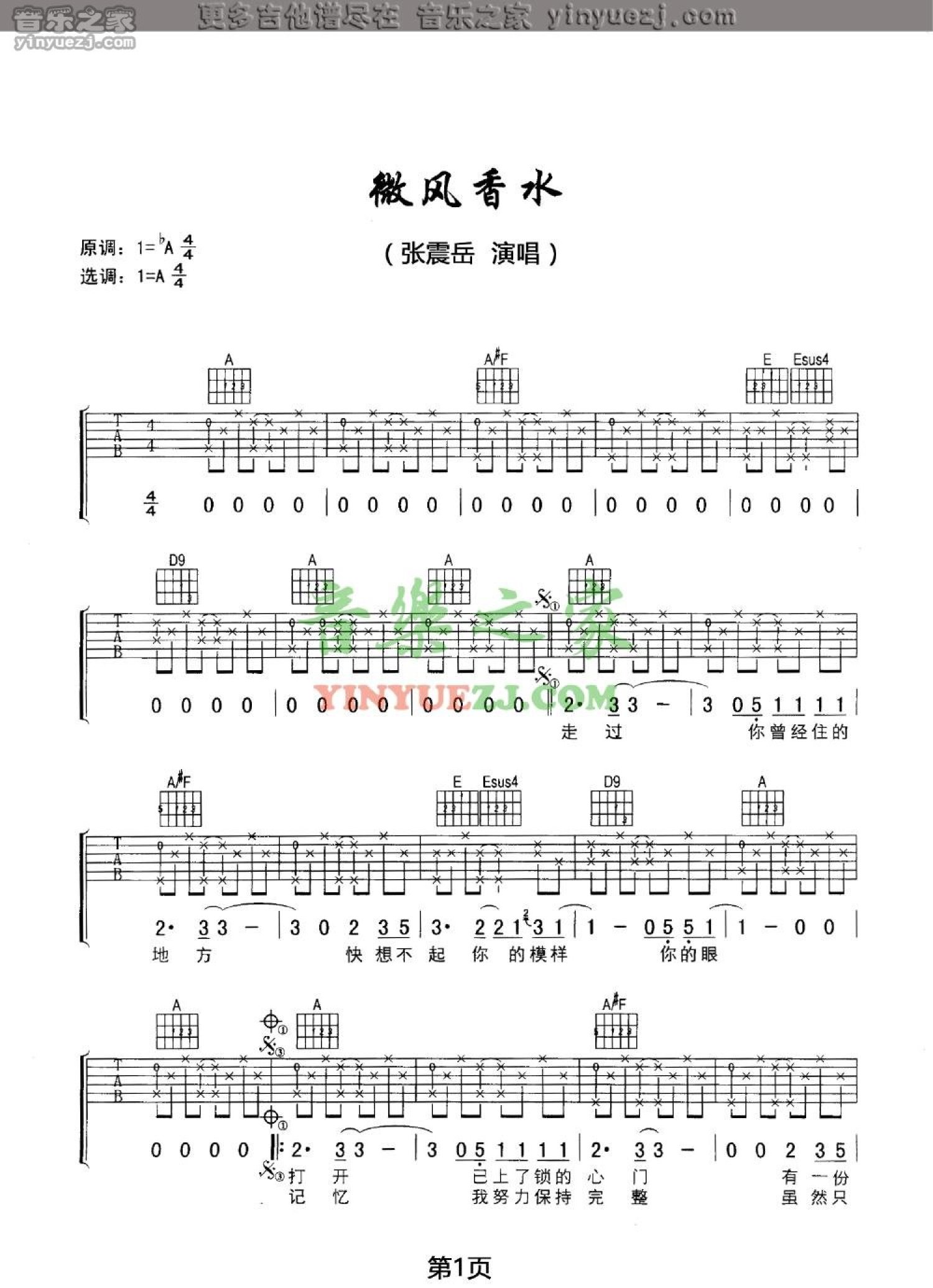 微风香水吉他谱 - 张震岳 - A调吉他弹唱谱