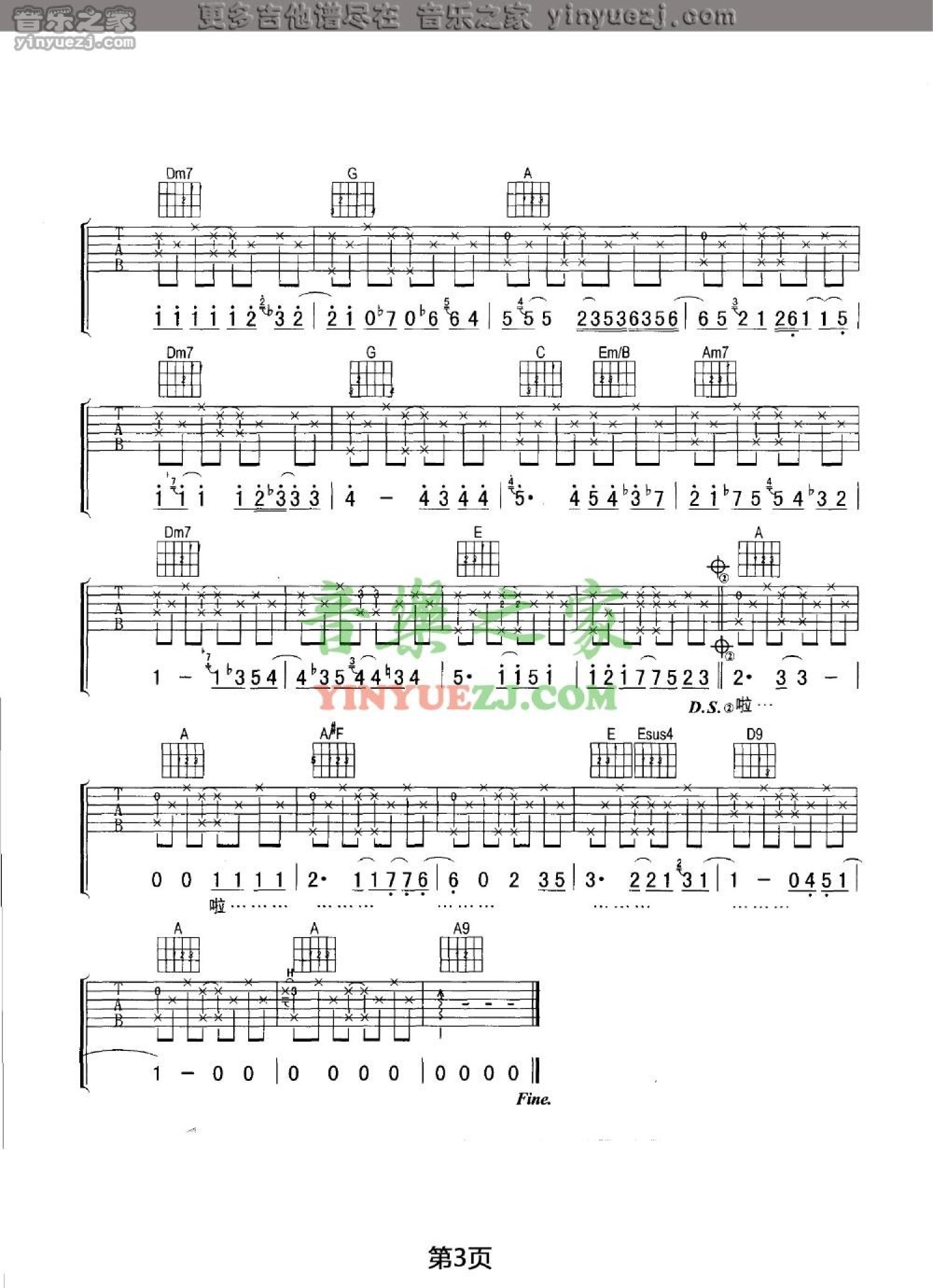 吉他弹唱A调来源:YYZJ1392 浏览2021-01-13 12:06发布图谱共3页