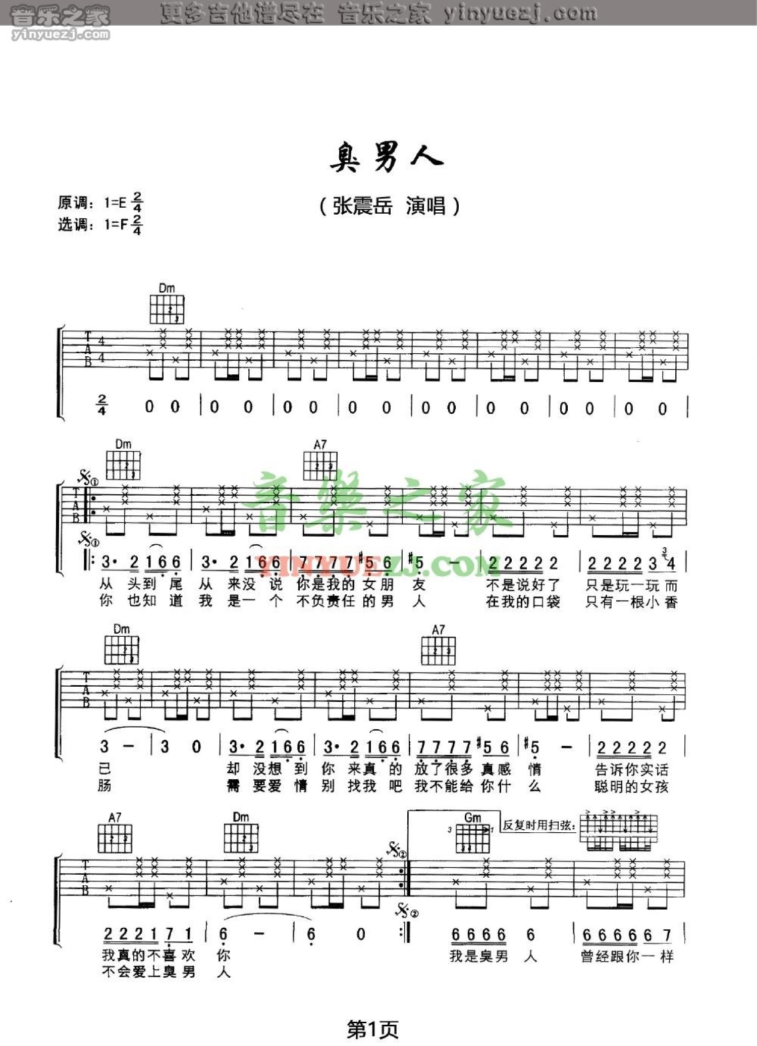 曲谱介绍: 张震岳《臭男人》吉他谱