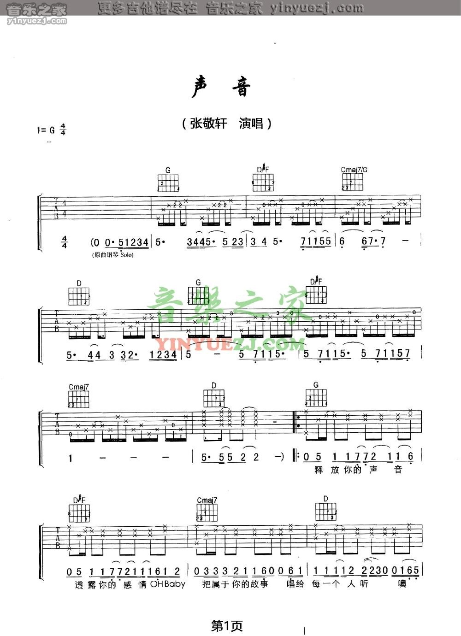 当前位置:琴谱网>吉他弹唱>声音