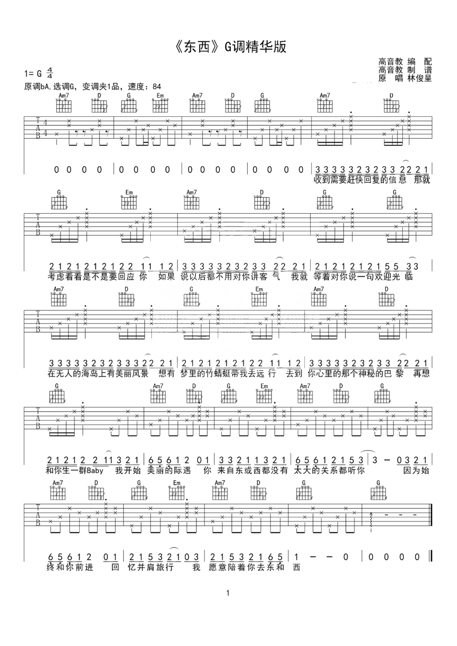 东西吉他谱 - 林俊呈 - G调吉他弹唱谱 - 男生版