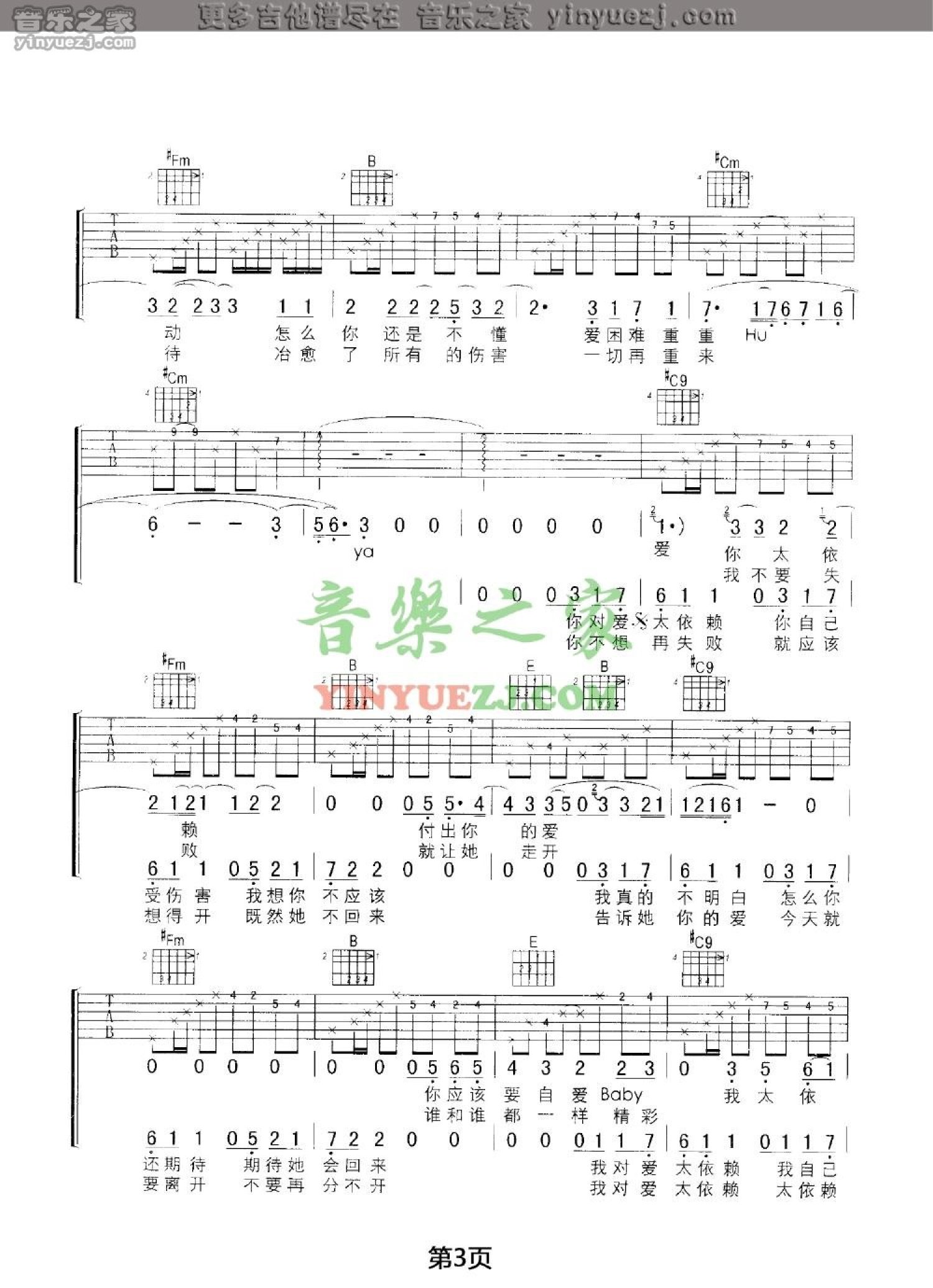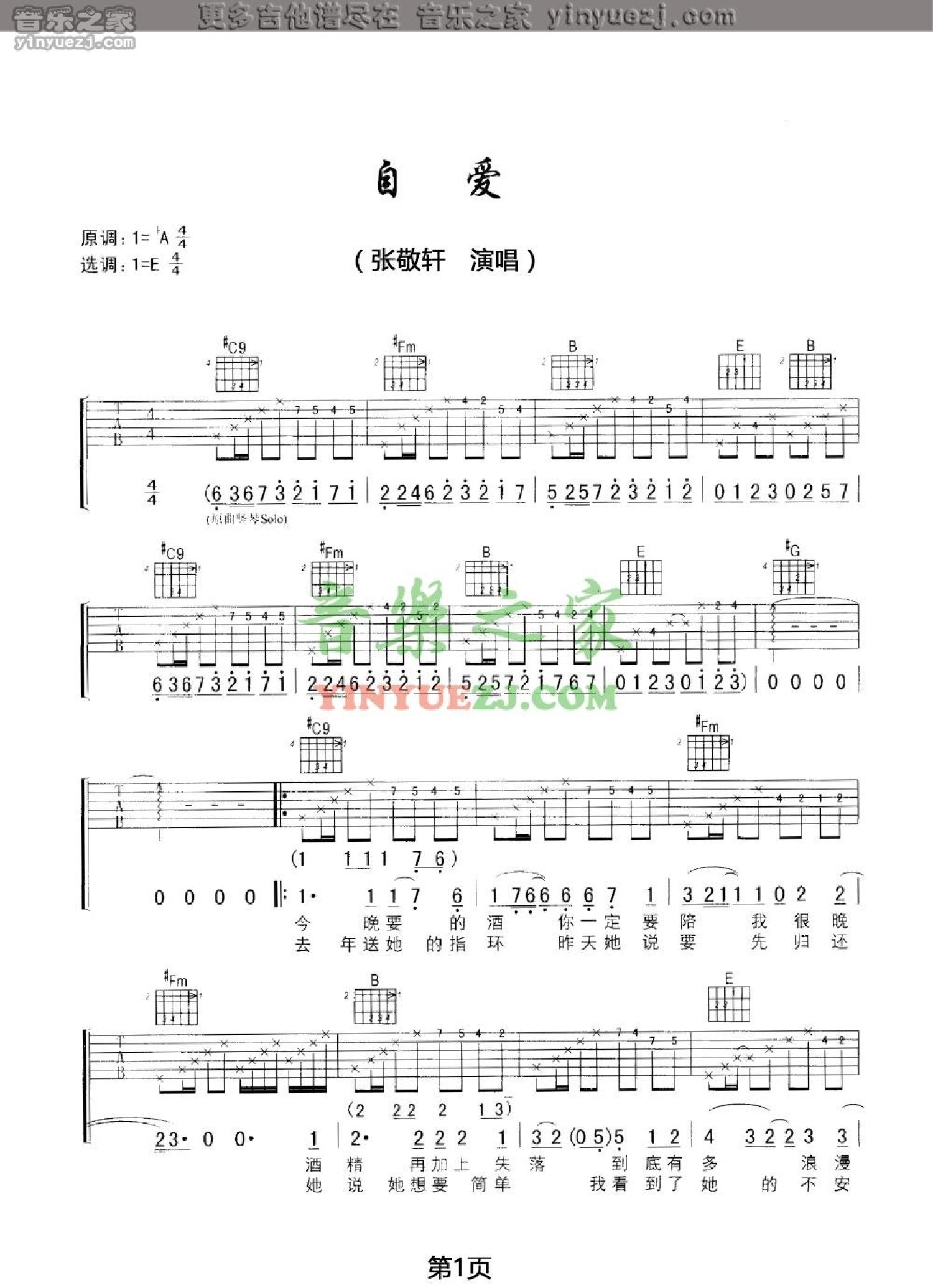 曲谱介绍: 张敬轩《自爱》吉他谱
