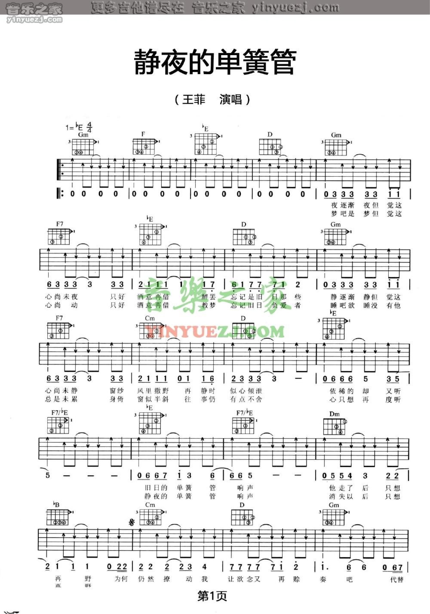 曲谱介绍: 王菲《静夜的单簧管》吉他谱
