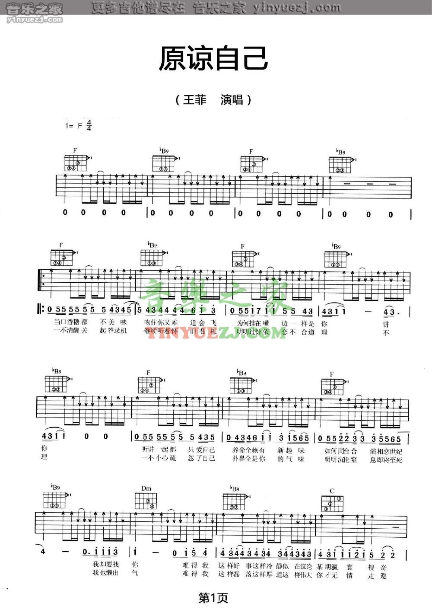 原谅自己吉他谱 - 王菲 - F调吉他弹唱谱