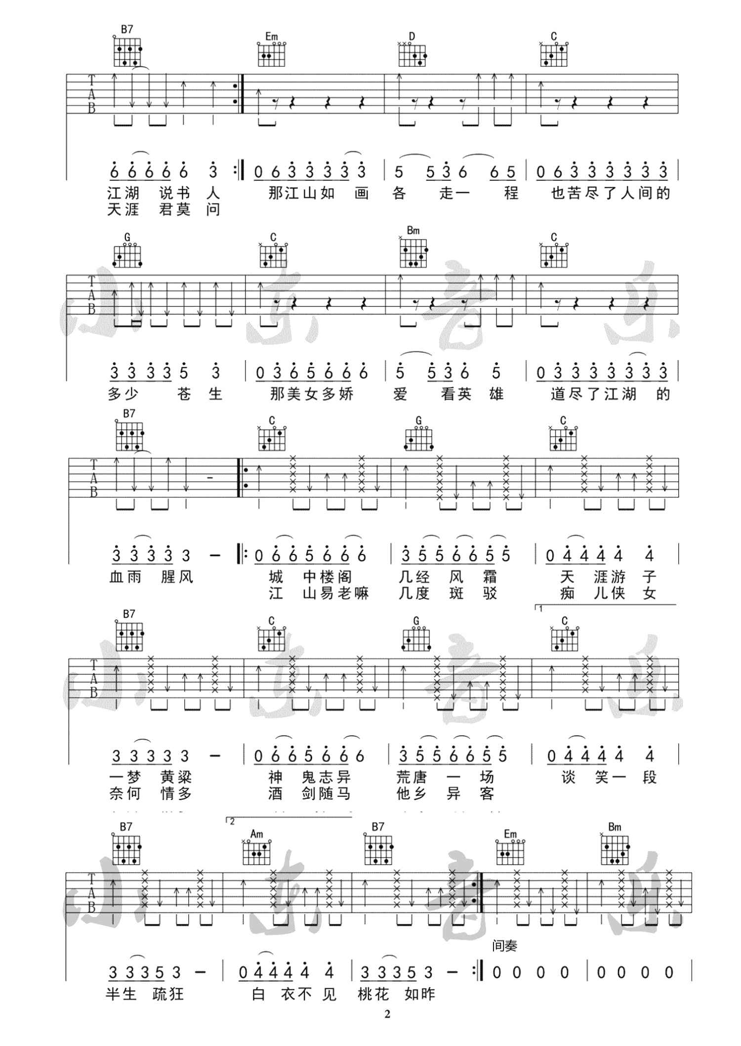 说书人吉他谱 - 暗杠寅子 - G调吉他弹唱谱