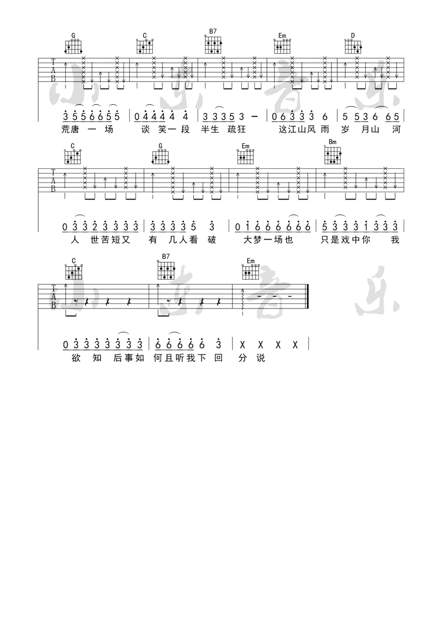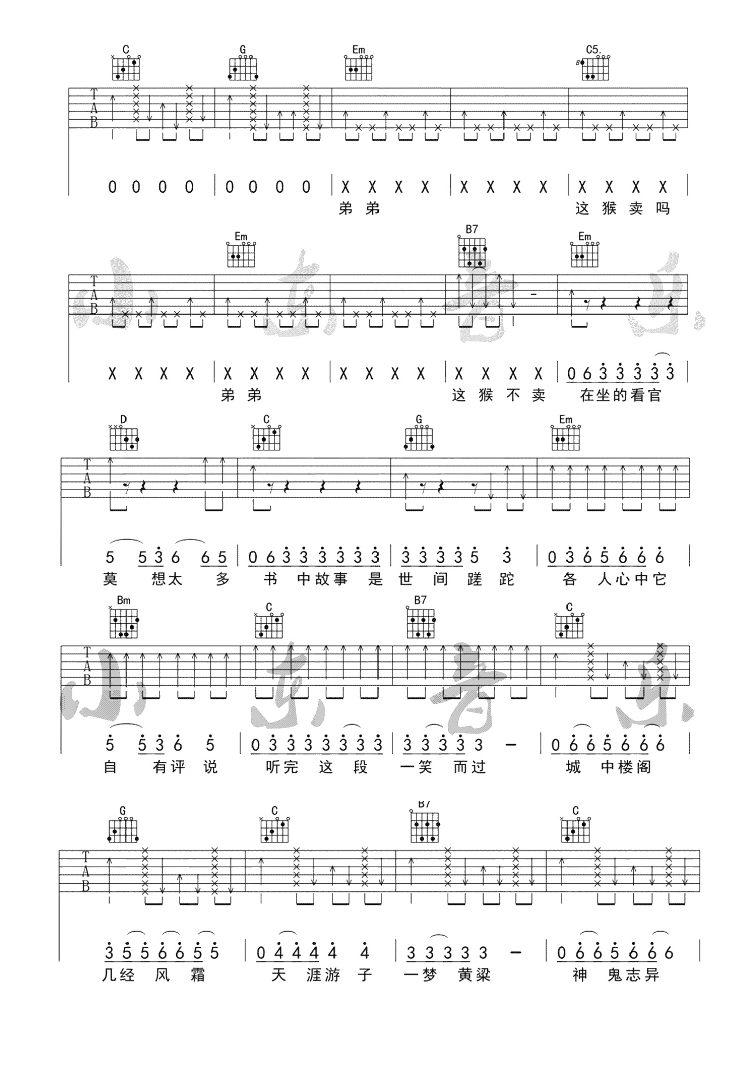 吉他弹唱G调来源:小东音乐1704 浏览2021-08-08 14:37发布图谱共4页