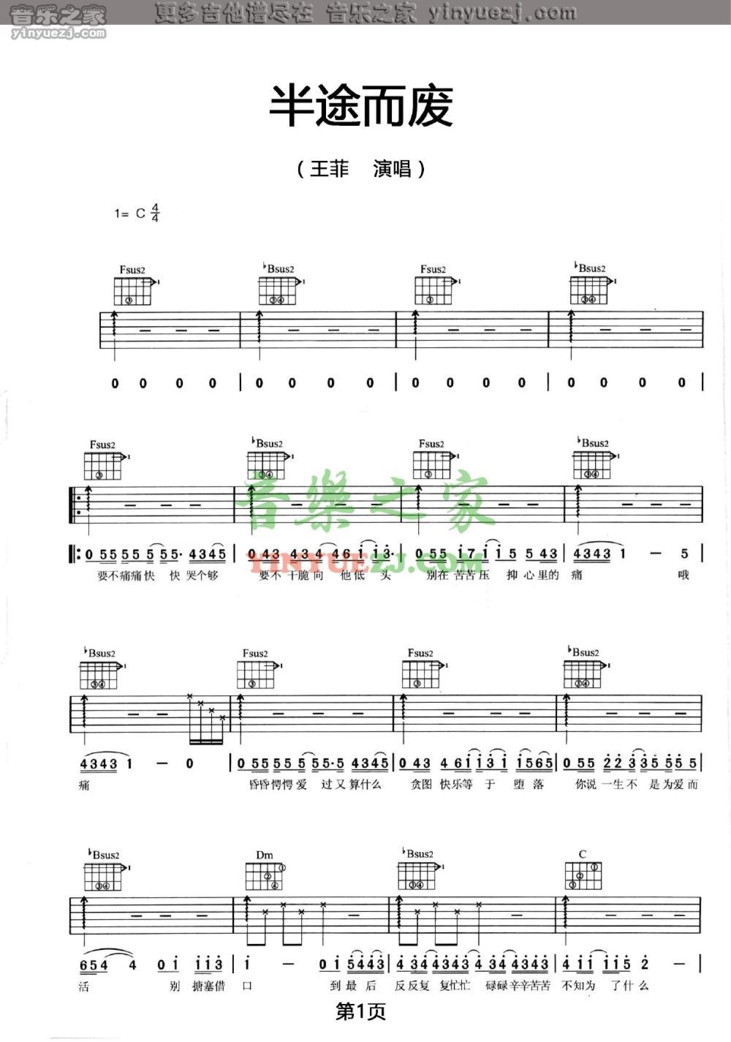 曲谱介绍: 王菲《半途而废》吉他谱