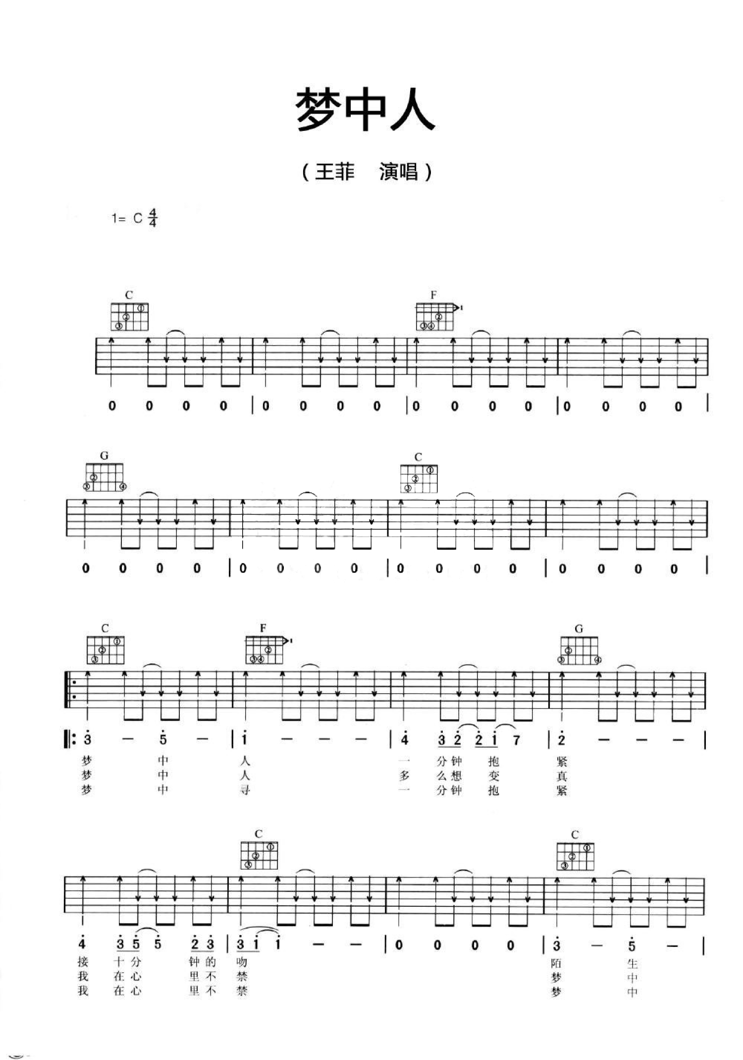 梦中人吉他谱 - 王菲 - C调吉他弹唱谱