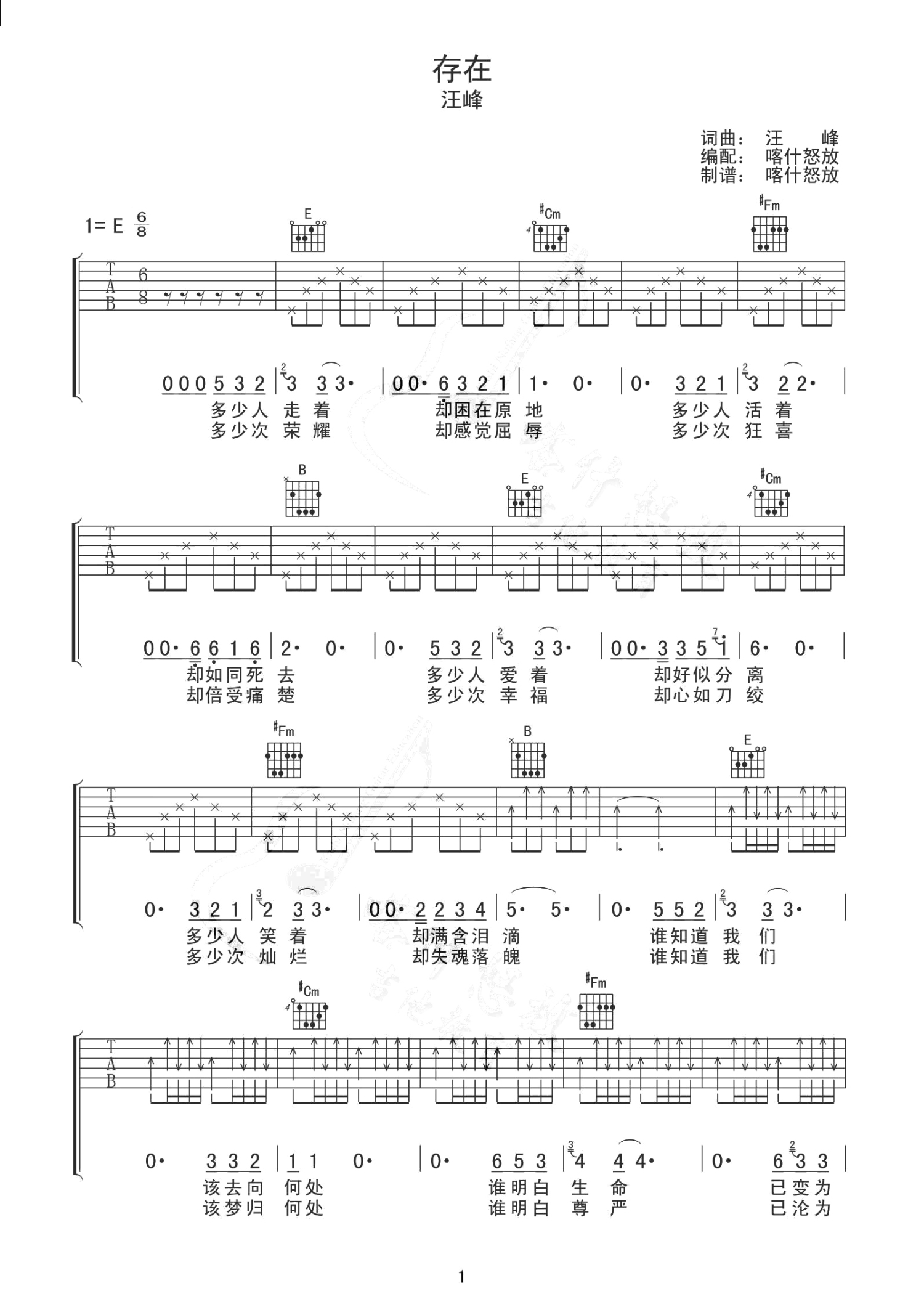 曲谱介绍: (汪峰)存在吉他谱-吉他图片六线谱