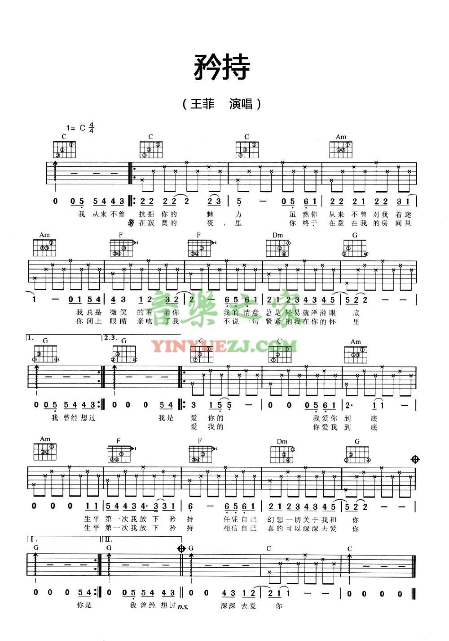 矜持吉他谱 - 王菲 - C调吉他弹唱谱