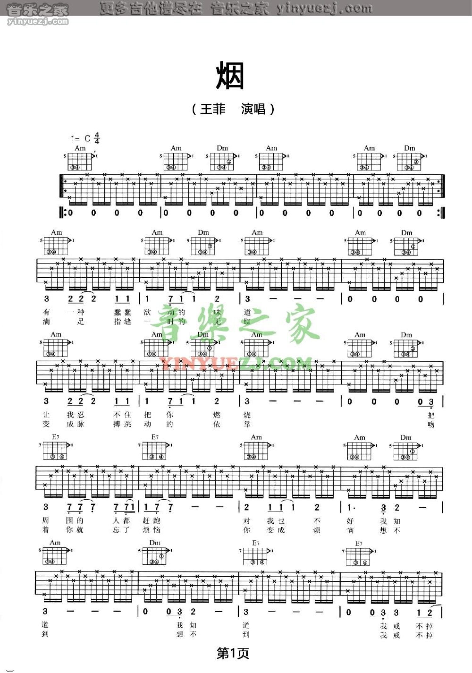 烟吉他谱 - 王菲 - C调吉他弹唱谱
