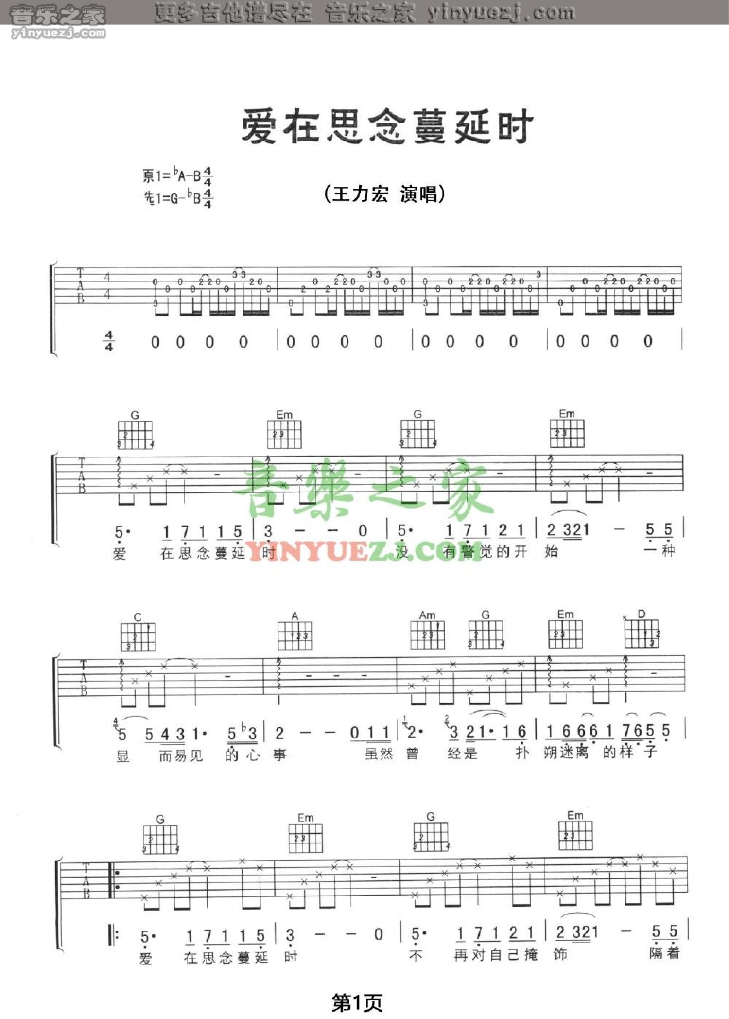 曲谱介绍: 王力宏《爱在思念蔓延时》吉他谱