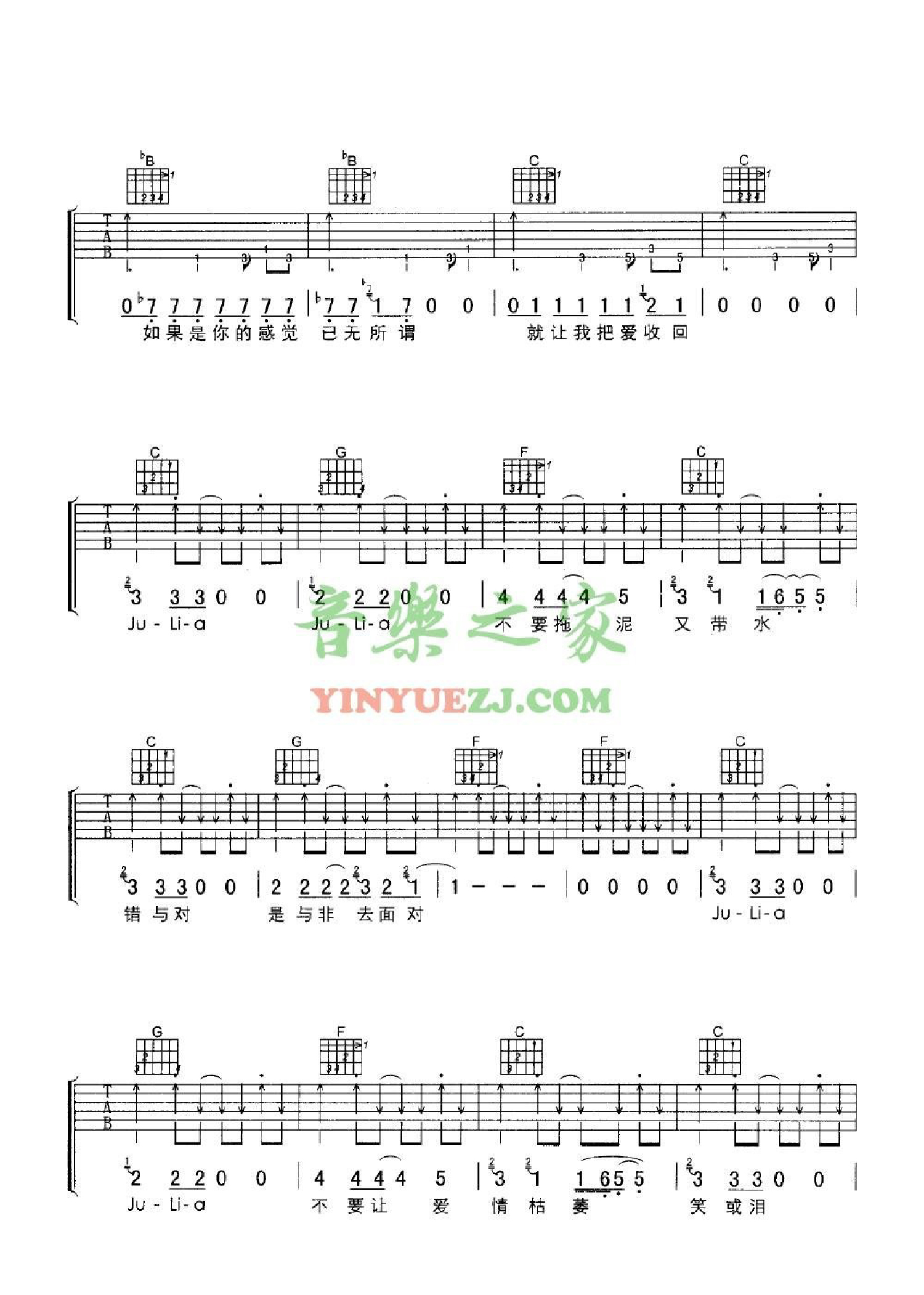 曲谱介绍: 王力宏《julia》吉他谱